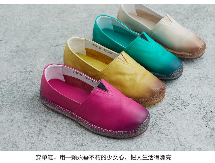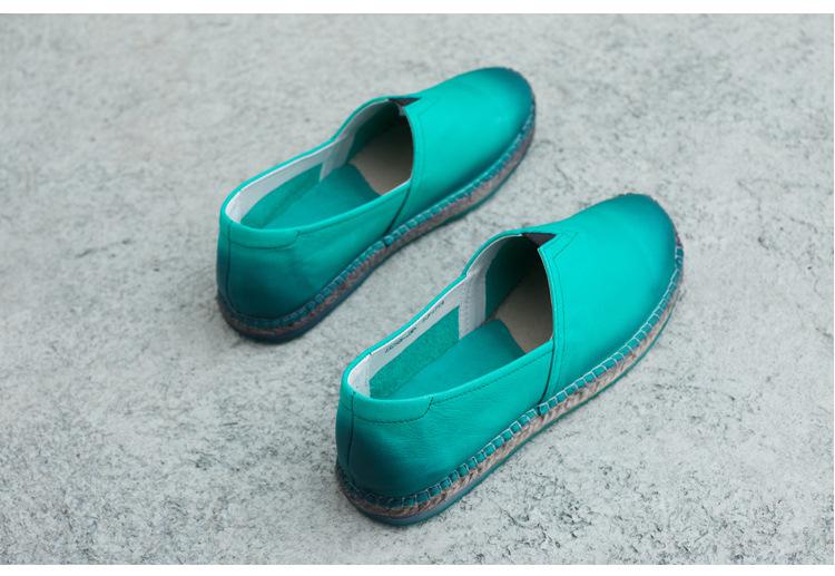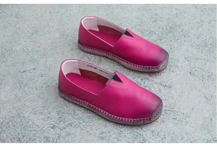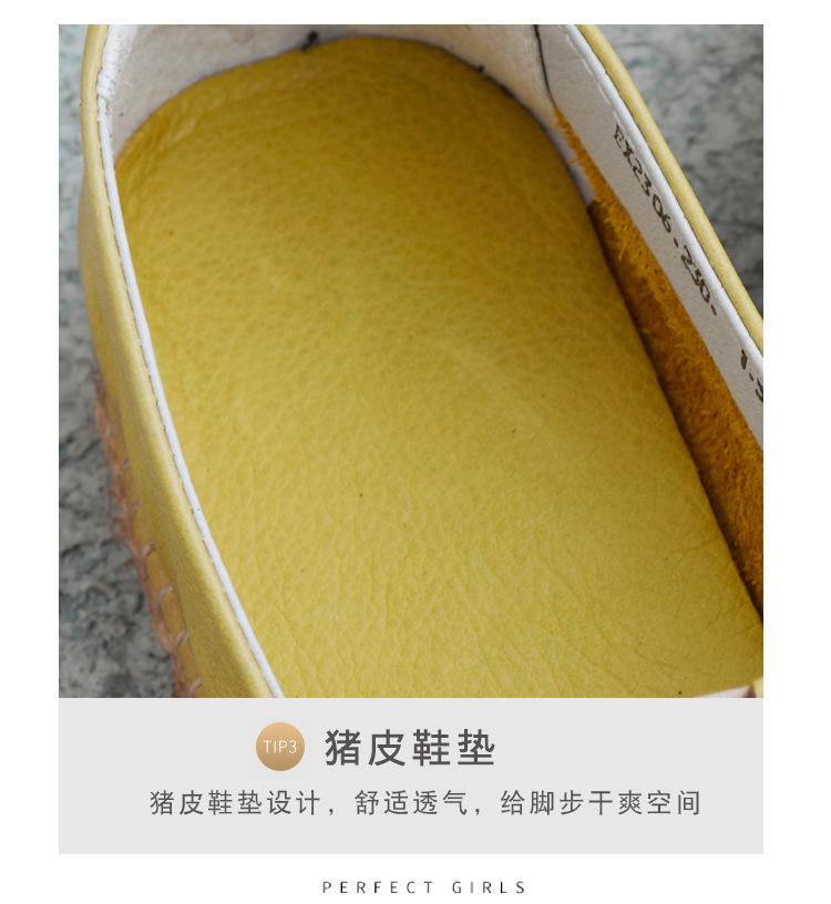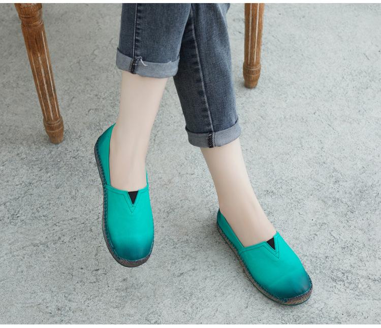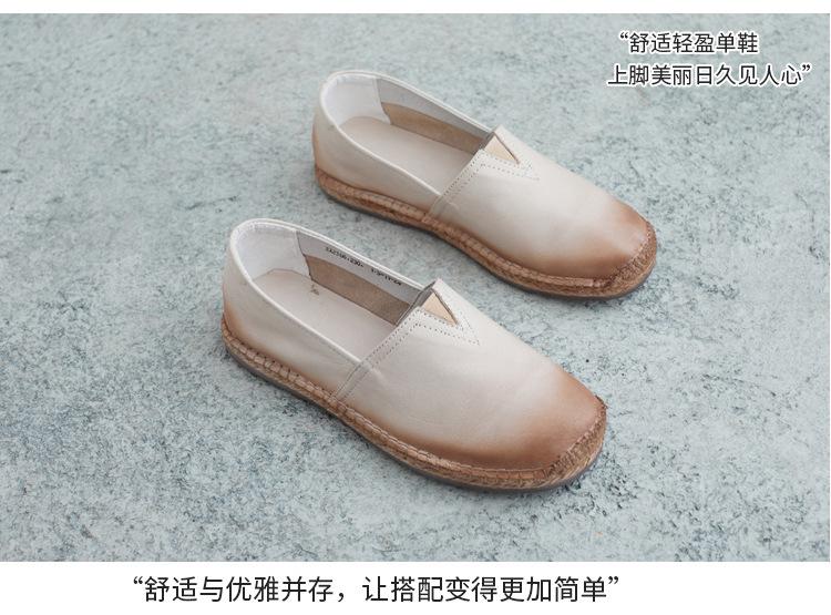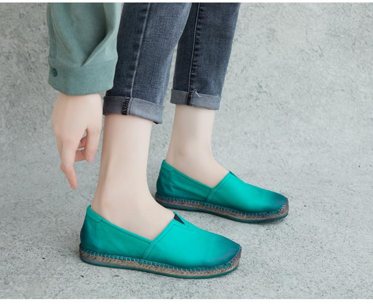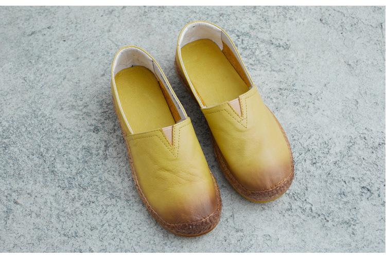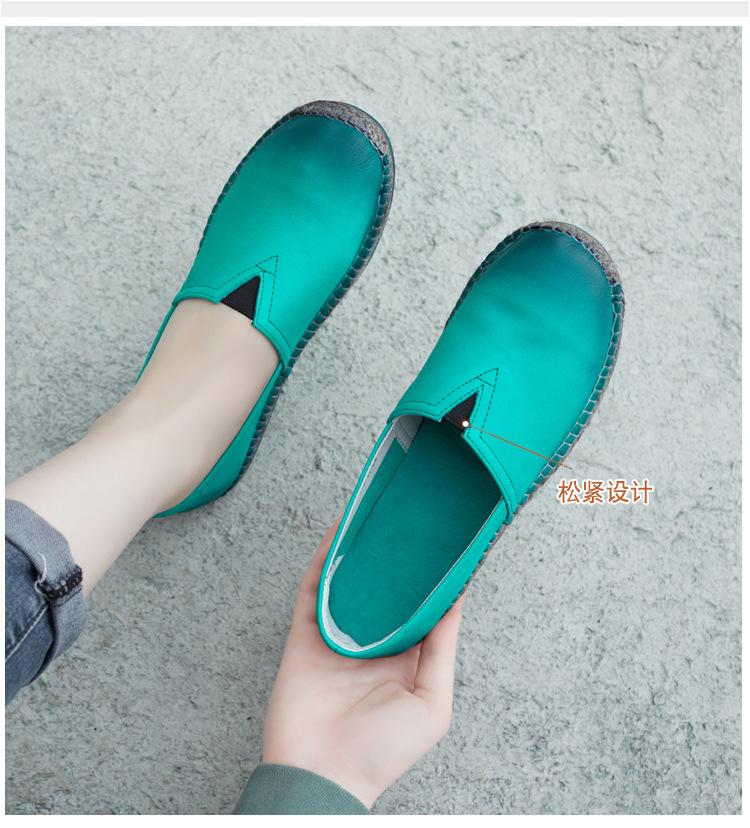 Primavera 2025 Nuevo Cuero Vintage Punta Redonda Slip-On Suela Suave Casual Plano Zapatos de Pescador