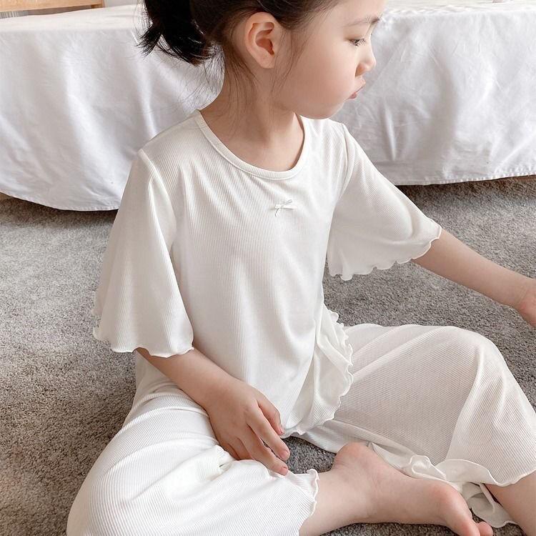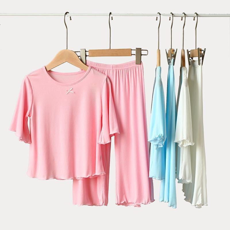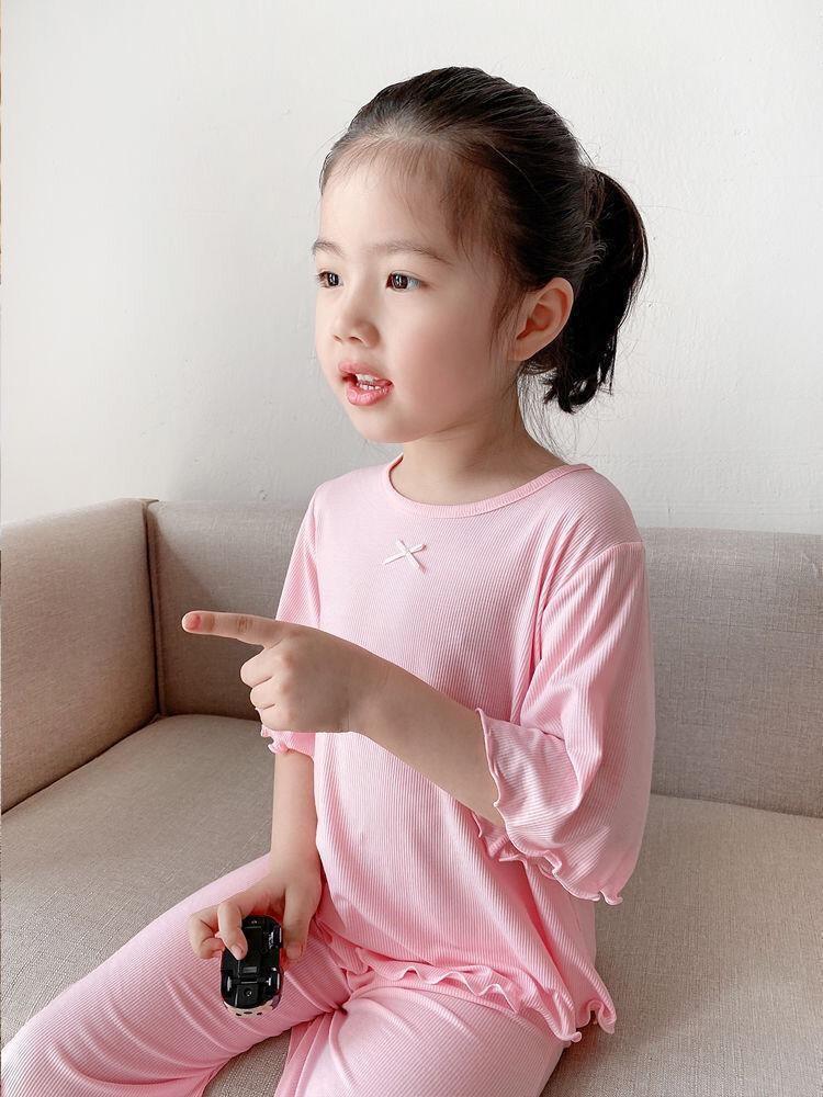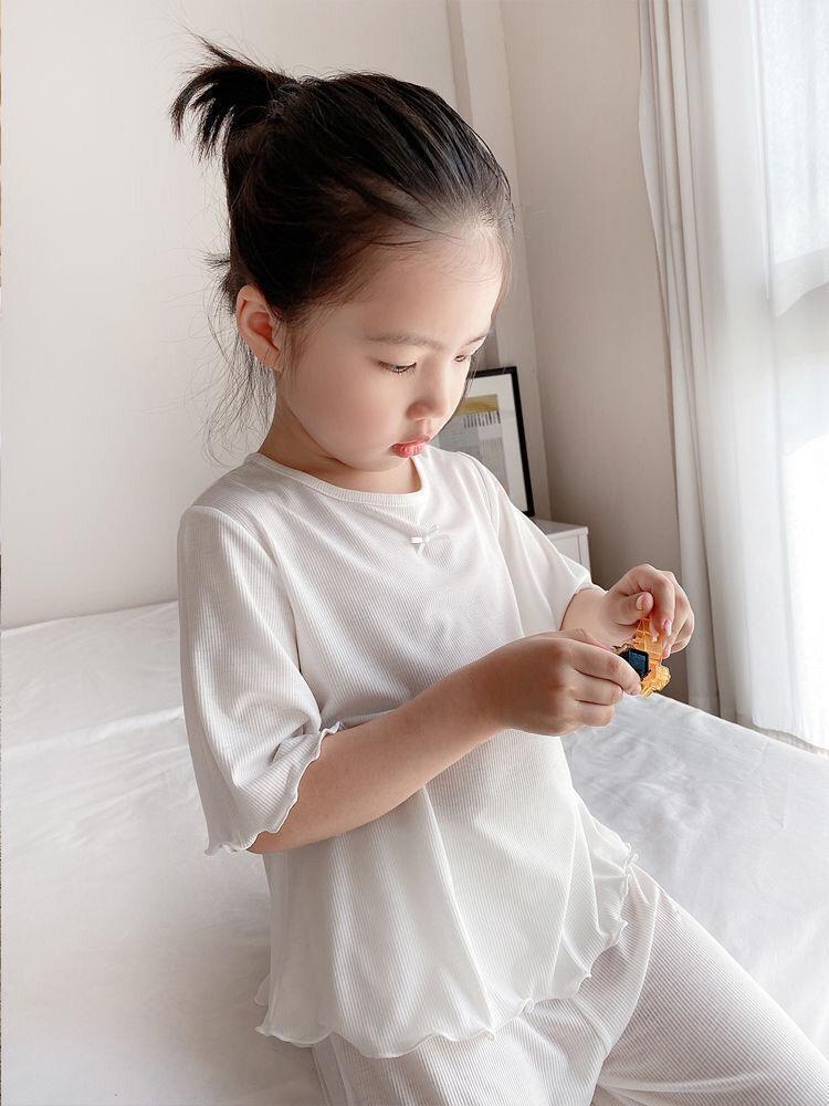 Pijamas de seda de hielo para niñas, ropa fina para el hogar para niños, ropa de verano para niños con aire acondicionado, novedad de verano