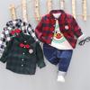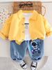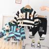 Traje de niño otoño nuevo tirantes de niño traje sudadera con capucha a rayas fabricantes de ropa infantil japonesa y coreana en nombre