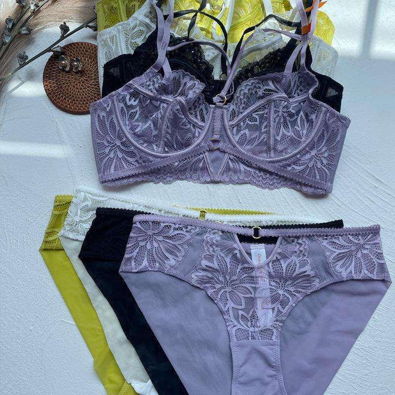 Sujetador de encaje ultrafino sexy de estilo francés con tirantes, colección de pecho grande y pecho pequeño, traje de sujetador antiflacidez