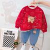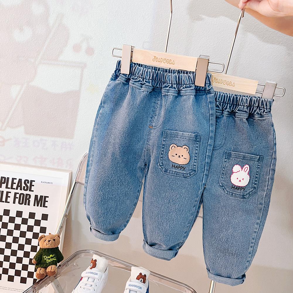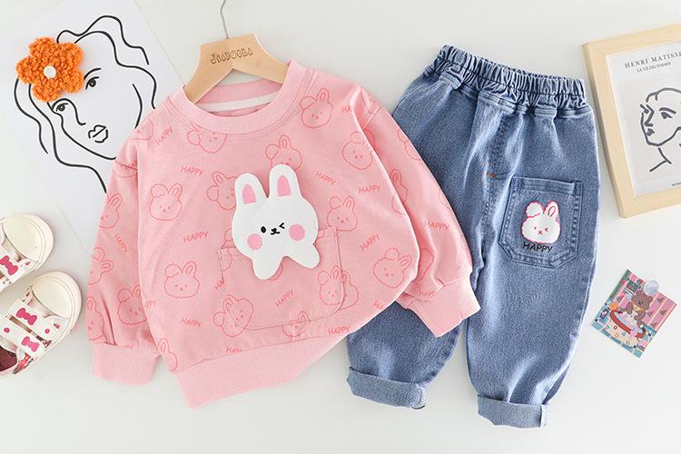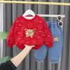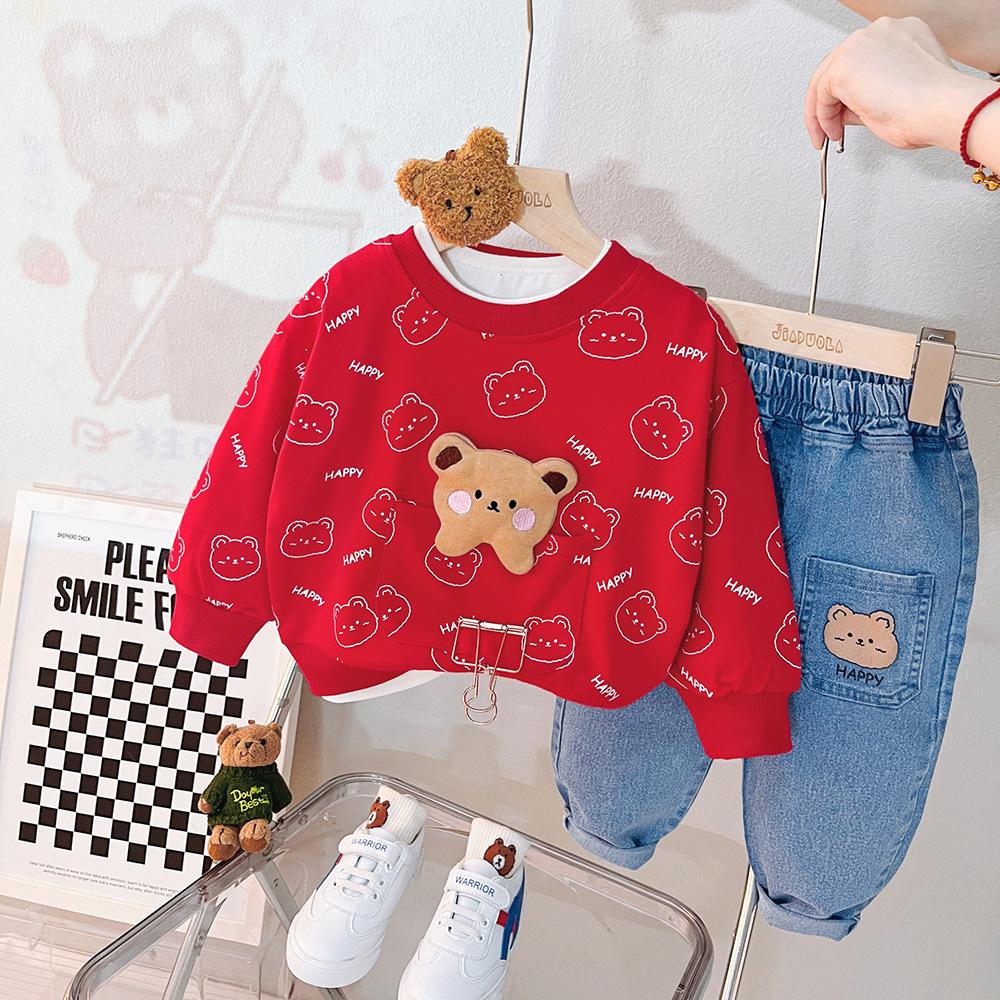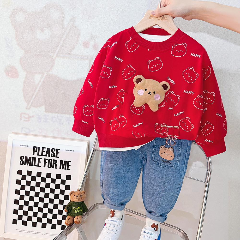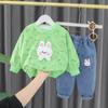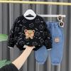 Conjunto de ropa infantil de primavera 2023, nuevo estilo coreano, conjunto informal de dos piezas con dibujos animados para bebé, suéter de manga larga y vaqueros para niño