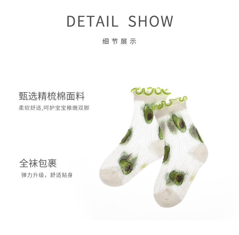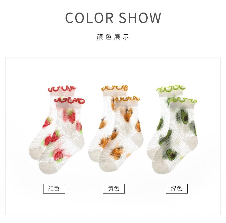 Compra 2025 Nuevos Calcetines de Verano para Bebé Malla Delgada Niños Sin Costuras Encaje Fruta Bebé Media Caña Niñas al por mayor en Joom.pro