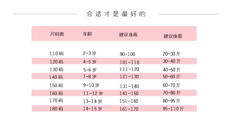 130/suitable for 100-130 height, 150/suitable for 131-150 height, 170/suitable for 151-170 height