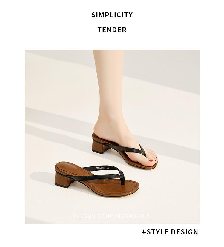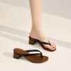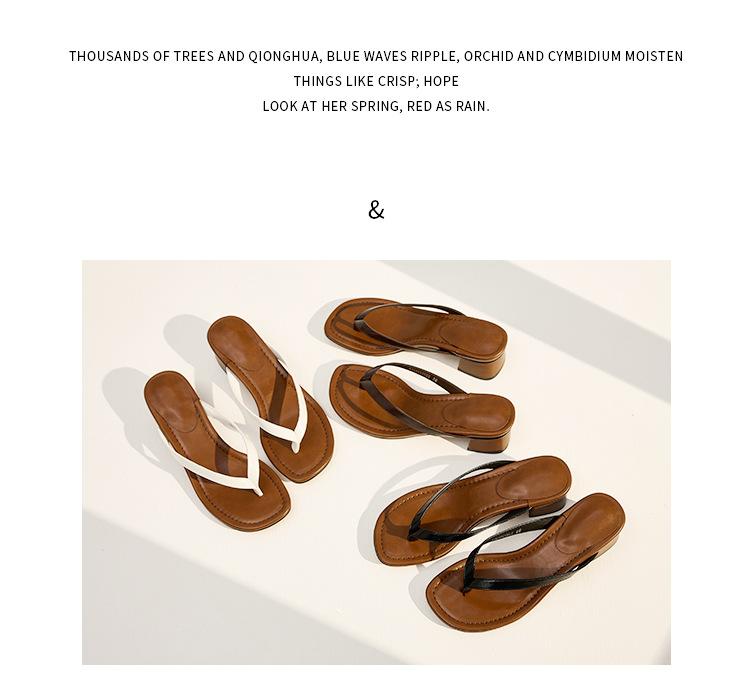 2025 Nuevas Sandalias de Verano Tipo Tanga Tacón Grueso Estilo Vacaciones de Playa Chanclas de Tacón Grueso Sandalias Planas para Exterior