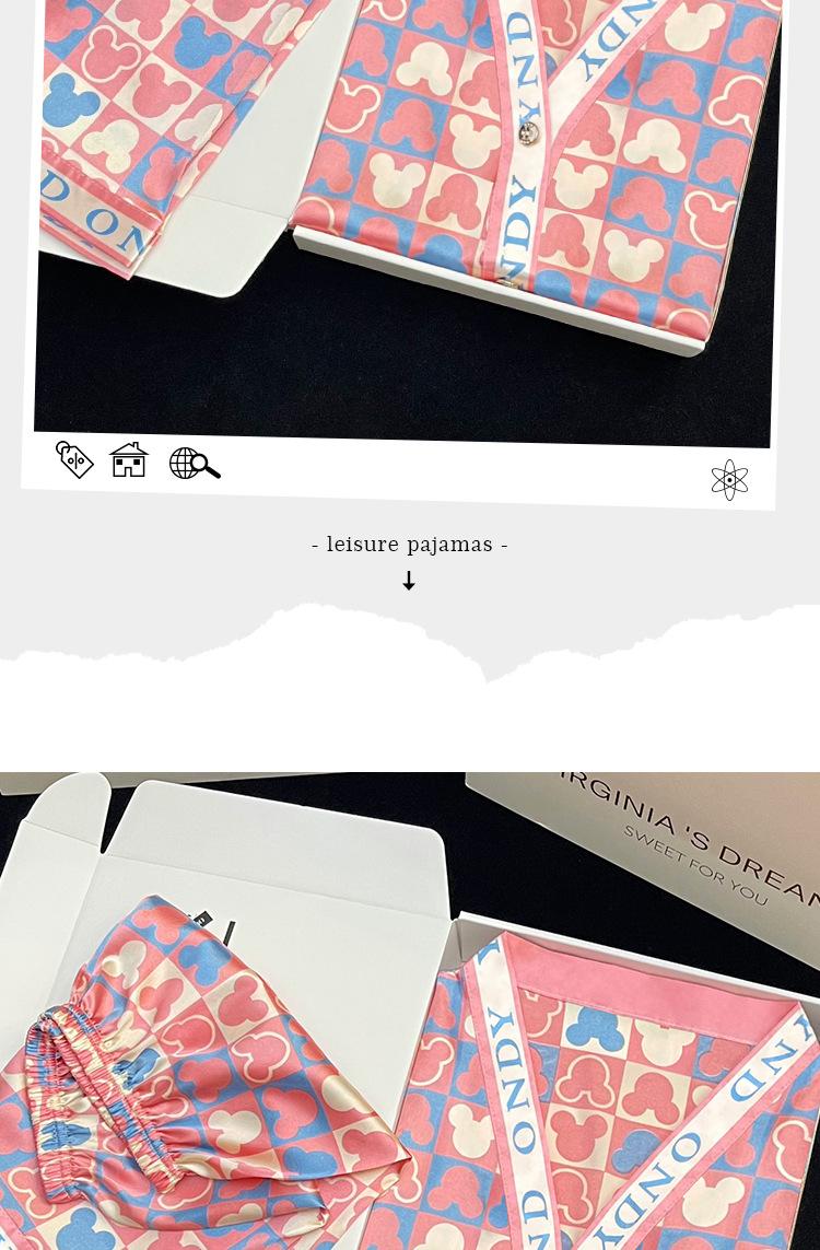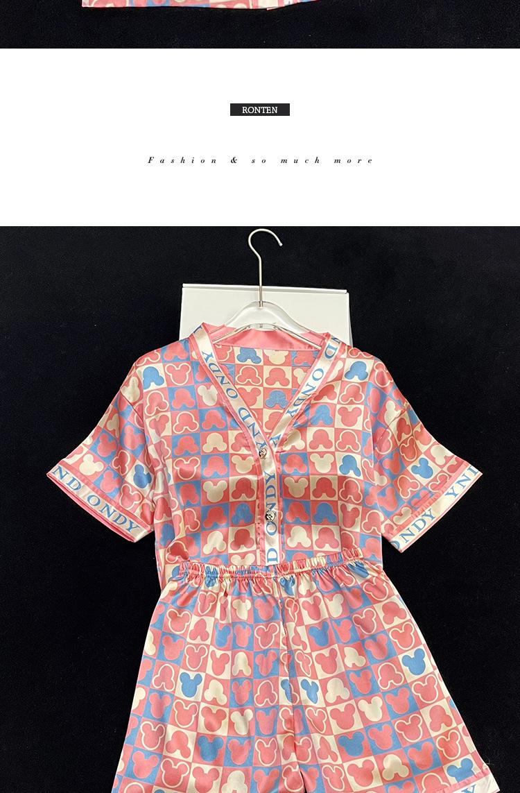 Pijama de mezcla de oso para mujer, verano, seda de hielo, manga corta, conjunto de shorts, se puede usar, sensación de alta gama, nuevo al por mayor