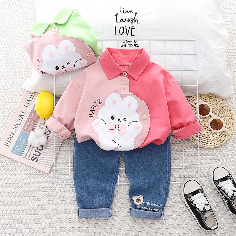 Conjunto de camisa y jeans de otoño para niñas, ropa para niños, conjunto de dos piezas de manga larga para primavera y otoño.