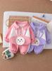 Long Sleeve Colorblock Rabbit Shirt Two-Piece Pink