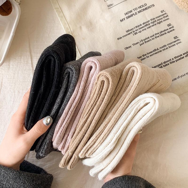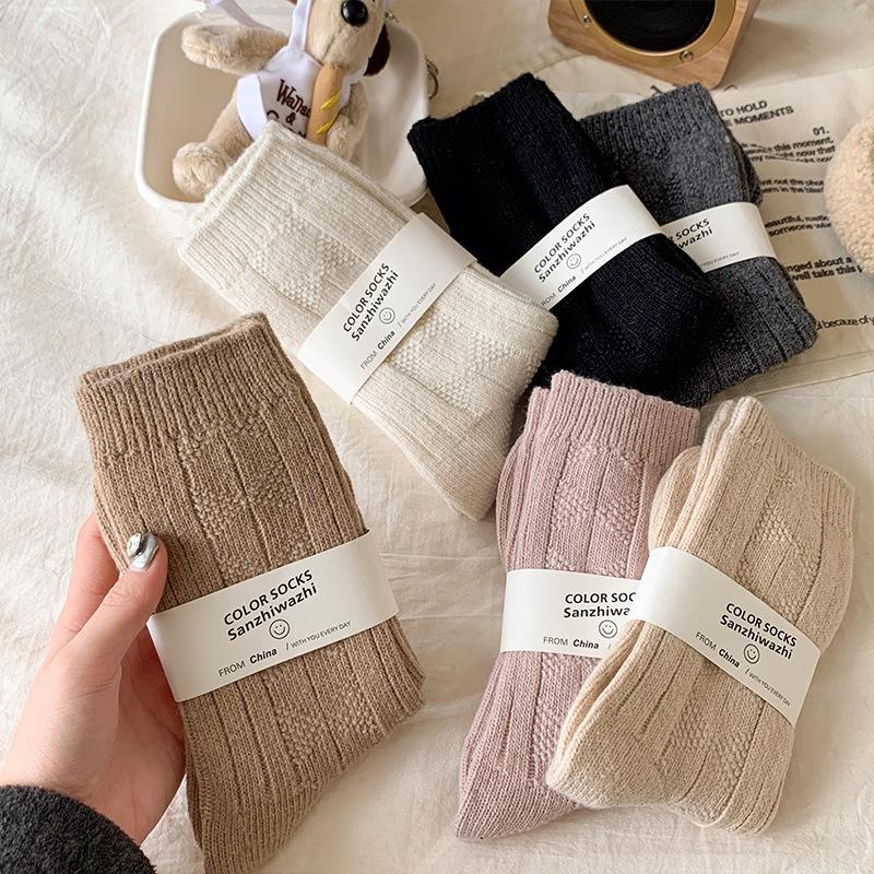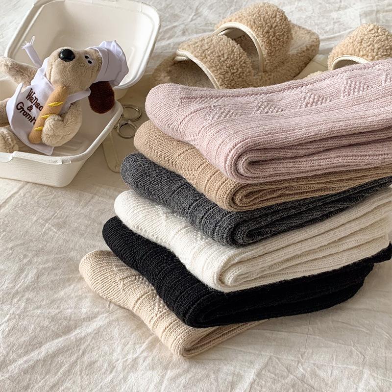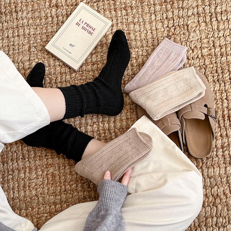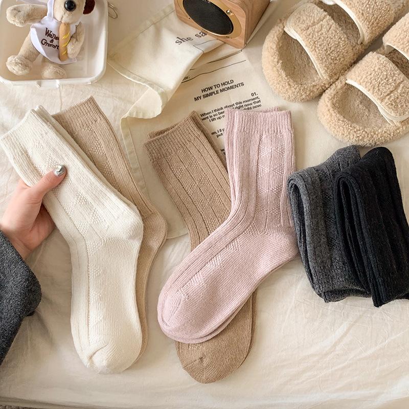 Compra Calcetines de lana para mujer, otoño e invierno, con forro polar de cachemira, gruesos y cálidos, para dormir, con cuadros de diamantes de color liso, hasta media pantorrilla al por mayor en Joom.pro