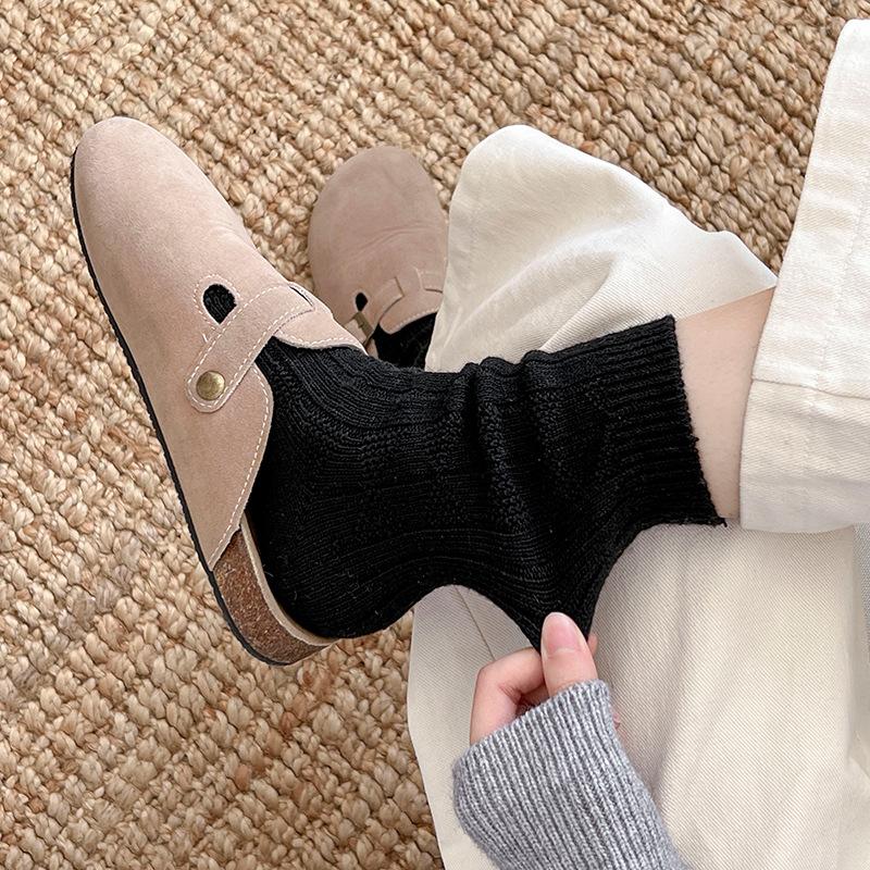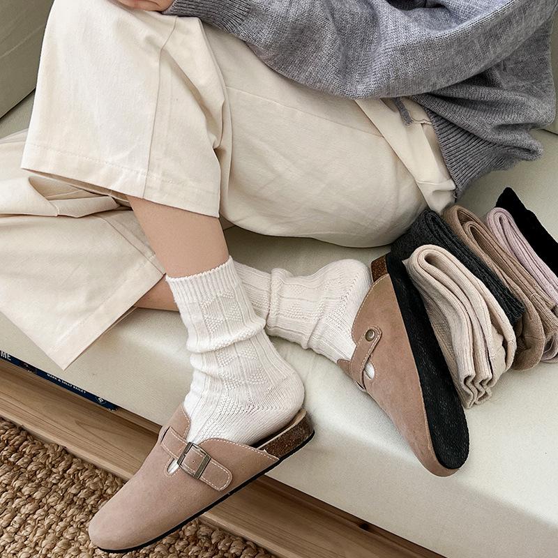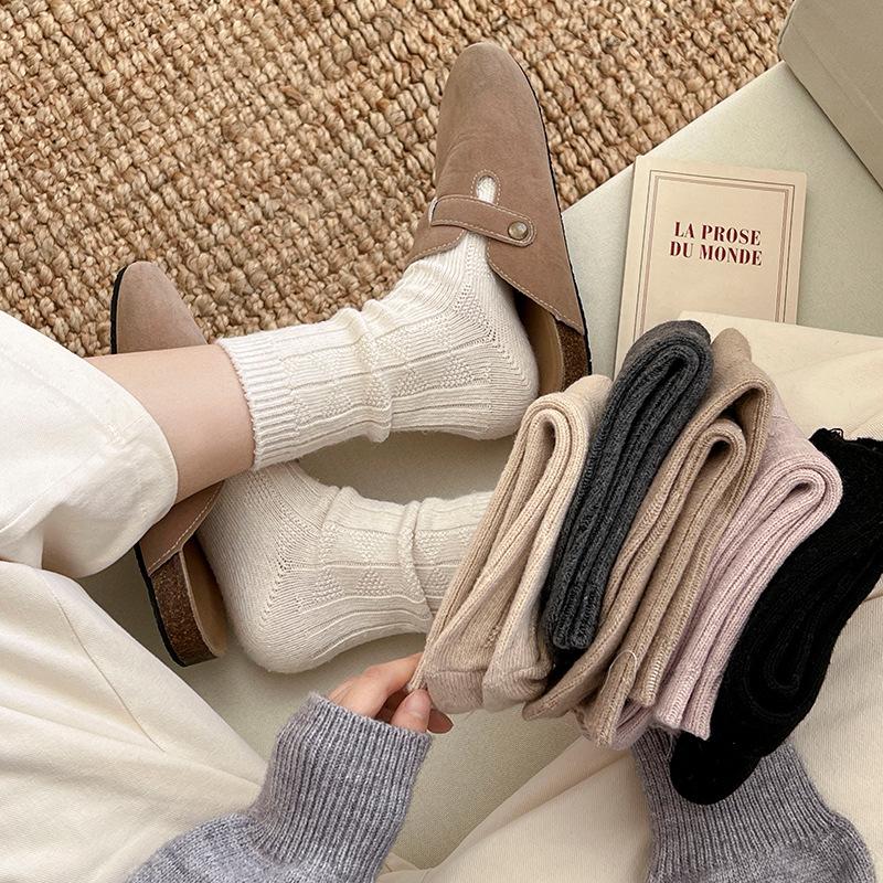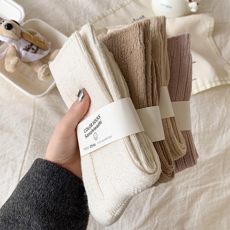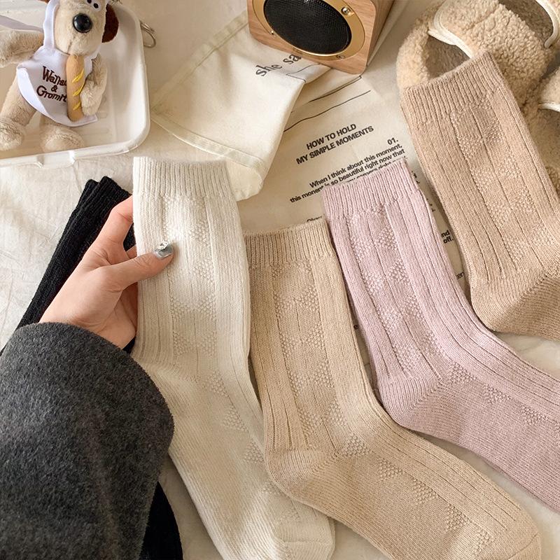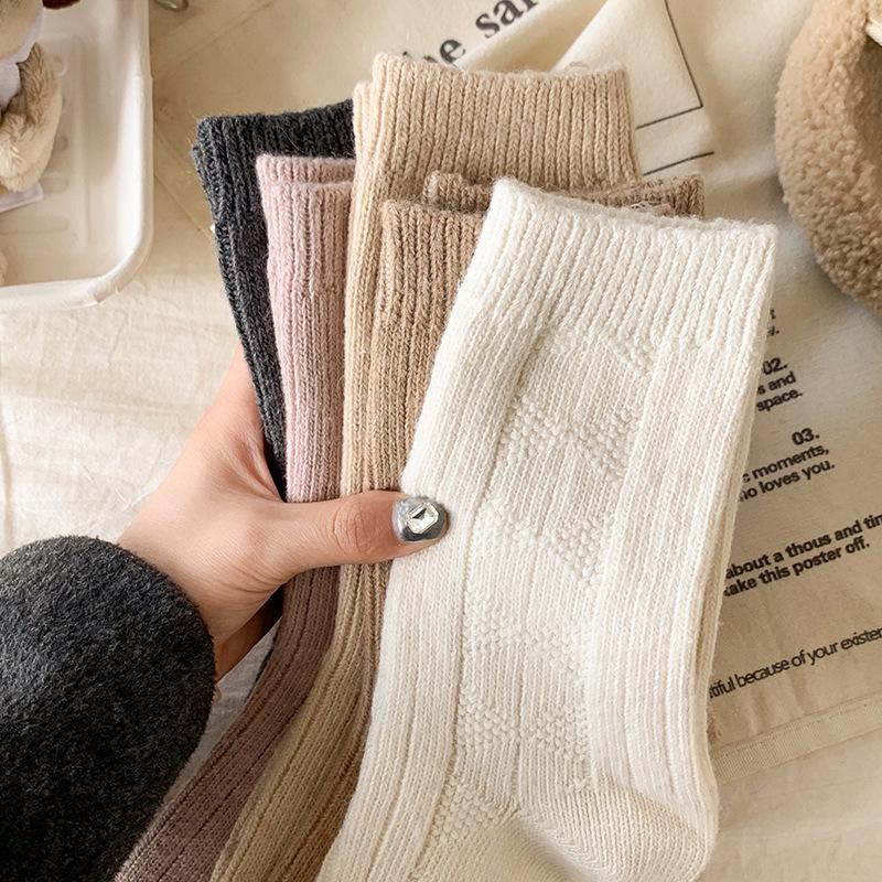 Compra Calcetines de lana para mujer, otoño e invierno, con forro polar de cachemira, gruesos y cálidos, para dormir, con cuadros de diamantes de color liso, hasta media pantorrilla al por mayor en Joom.pro