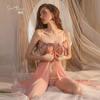 Jinxiao Lencería Sexy Encaje Sujetador Panties Deseo Puro Tentación Pijama Conjunto Sexy Caliente de Tres Puntos con Liguero