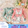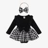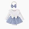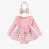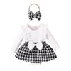Ropa Infantil Baoxian Estilo Pequeño Fragante Otoño e Invierno Bebé Niña Encaje Manga Larga Empalmado Tejido Cuadros Falda Lazo Harem