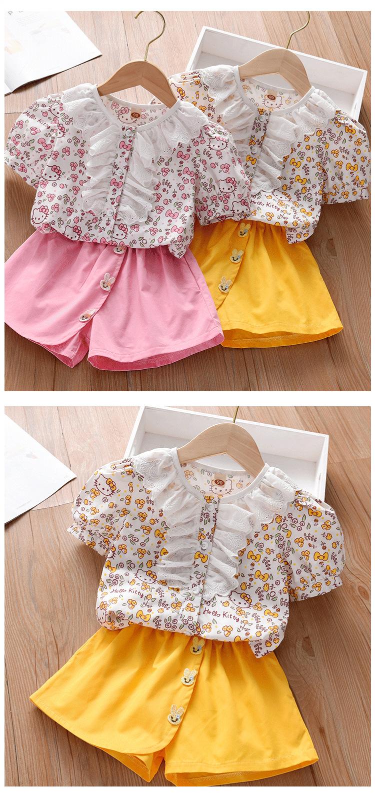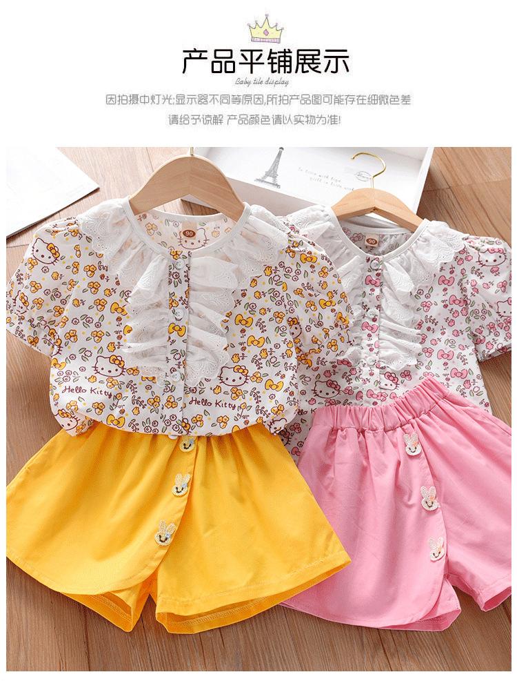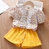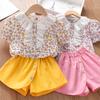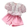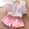 Traje de Manga Corta para Niños 2025 Nuevo Verano para Niñas Shorts Encaje Ropa Floral Bebé Niña Conjunto de Dos Piezas a la Moda