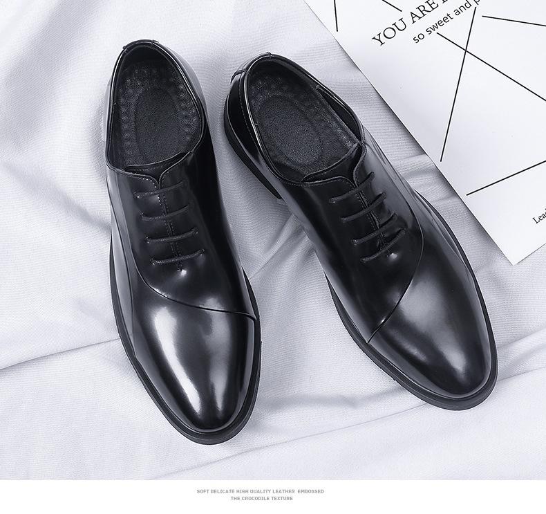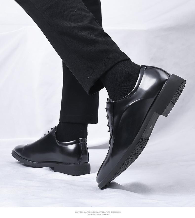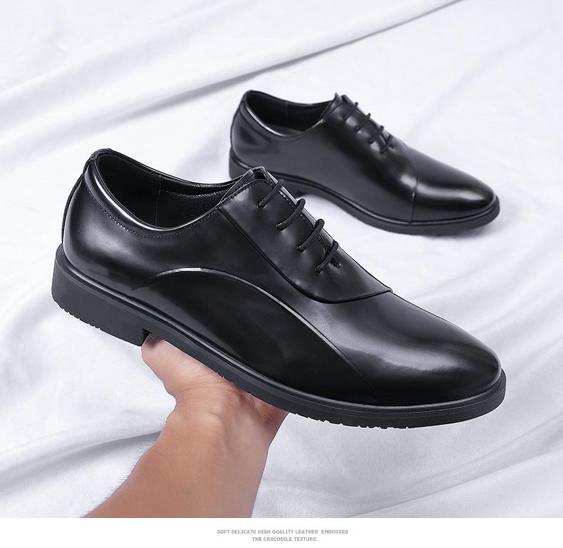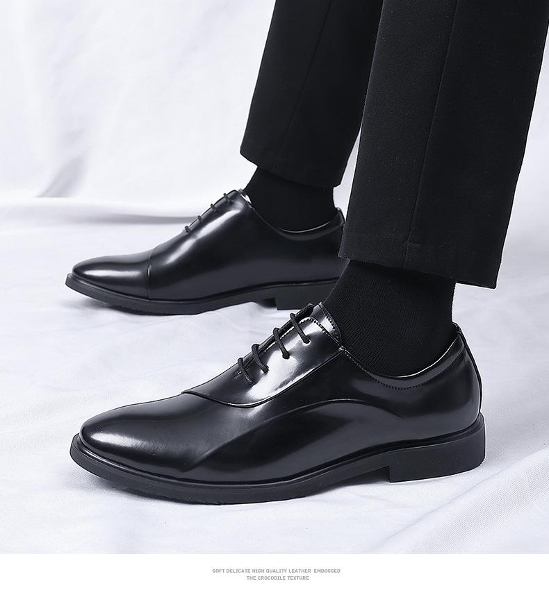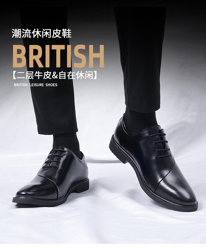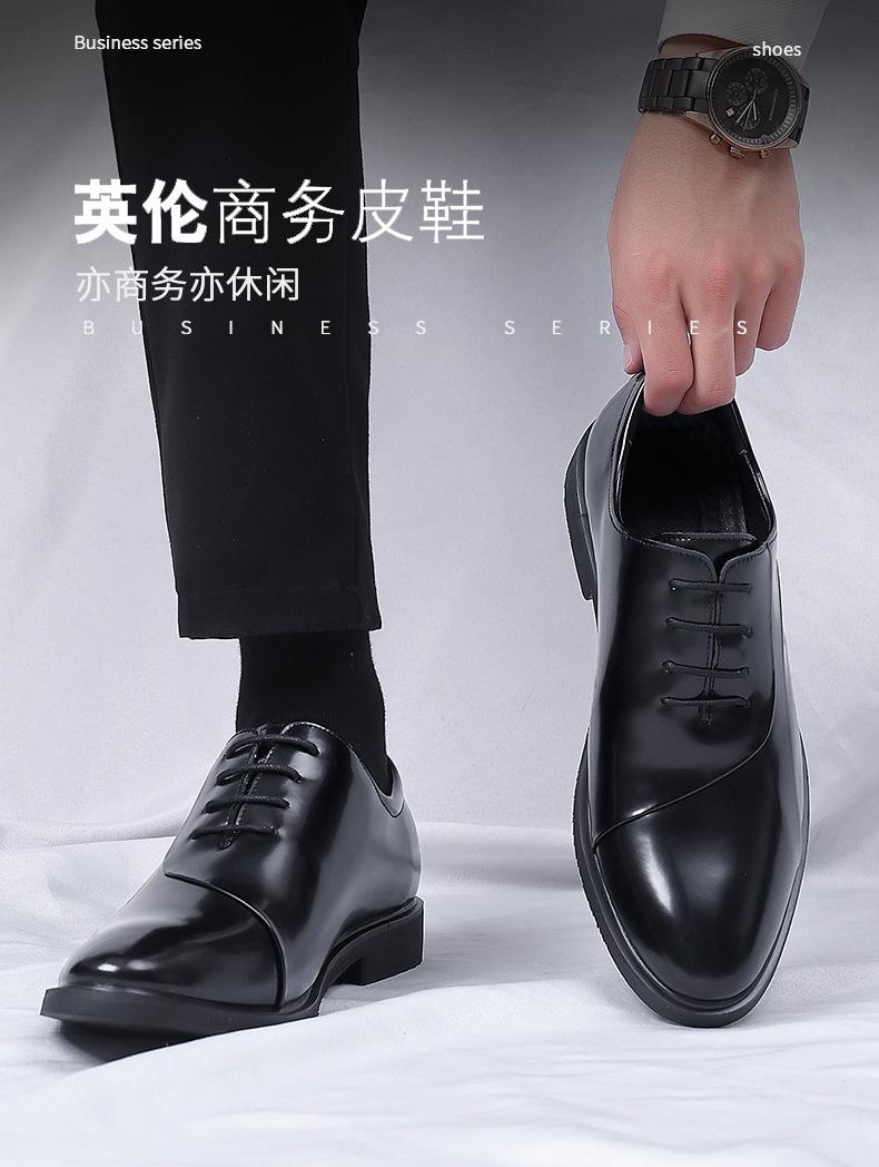 Zapatos de cuero para hombre, nuevos zapatos de vestir de negocios para hombre, estilo coreano, británicos, de punta puntiaguda, de moda, con suela suave y aumento de altura para novios y bodas.