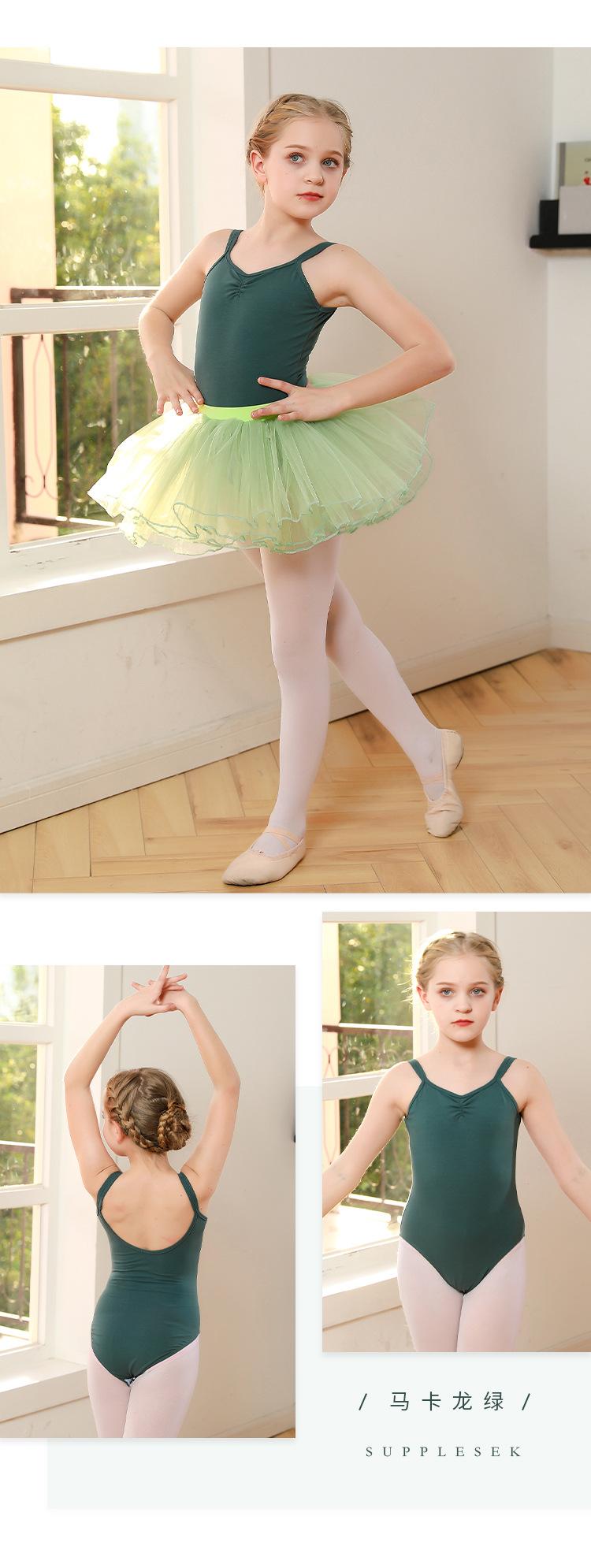 En stock, ropa de baile para niños, mono de algodón con doble tirantes, para práctica de gimnasia, ballet, falda de gasa de media longitud para baile.