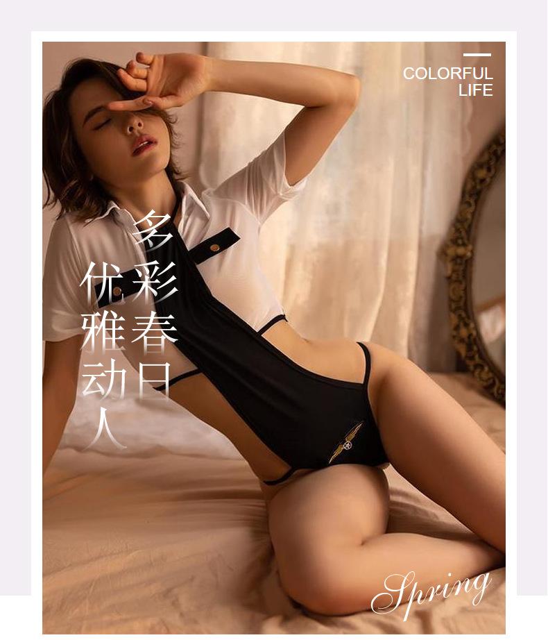 Uniforme Sexy Siamés Cuello Alto Uniforme de Mujer Policía Caliente Pasión Tentación Lencería Sexy Uniforme Sexy Suo Ai