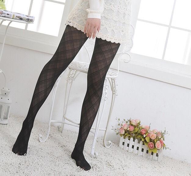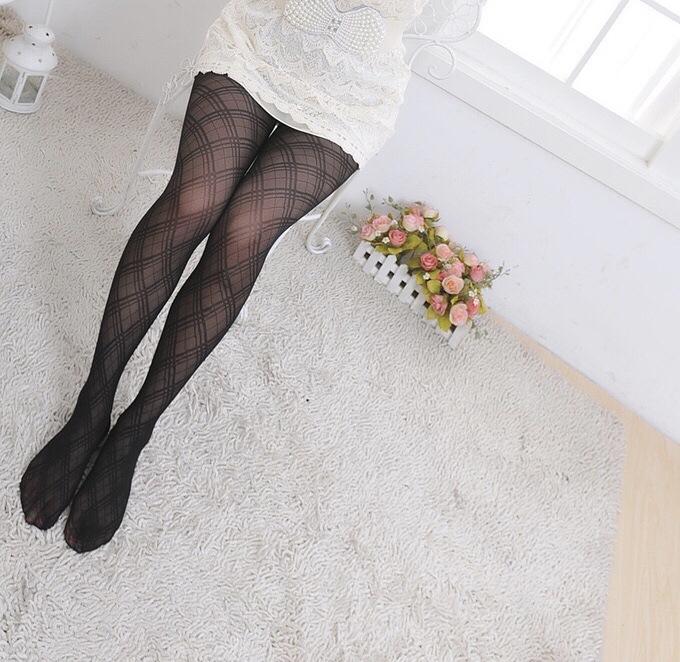 Plaid-20# jacquard pantyhose black simple outfit, Plaid-20# jacquard pantyhose White simple outfit, Plaid-20# ...