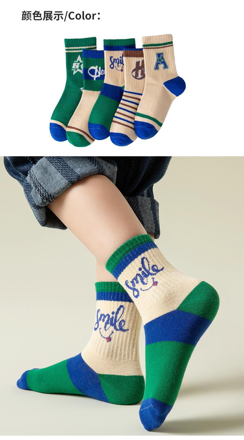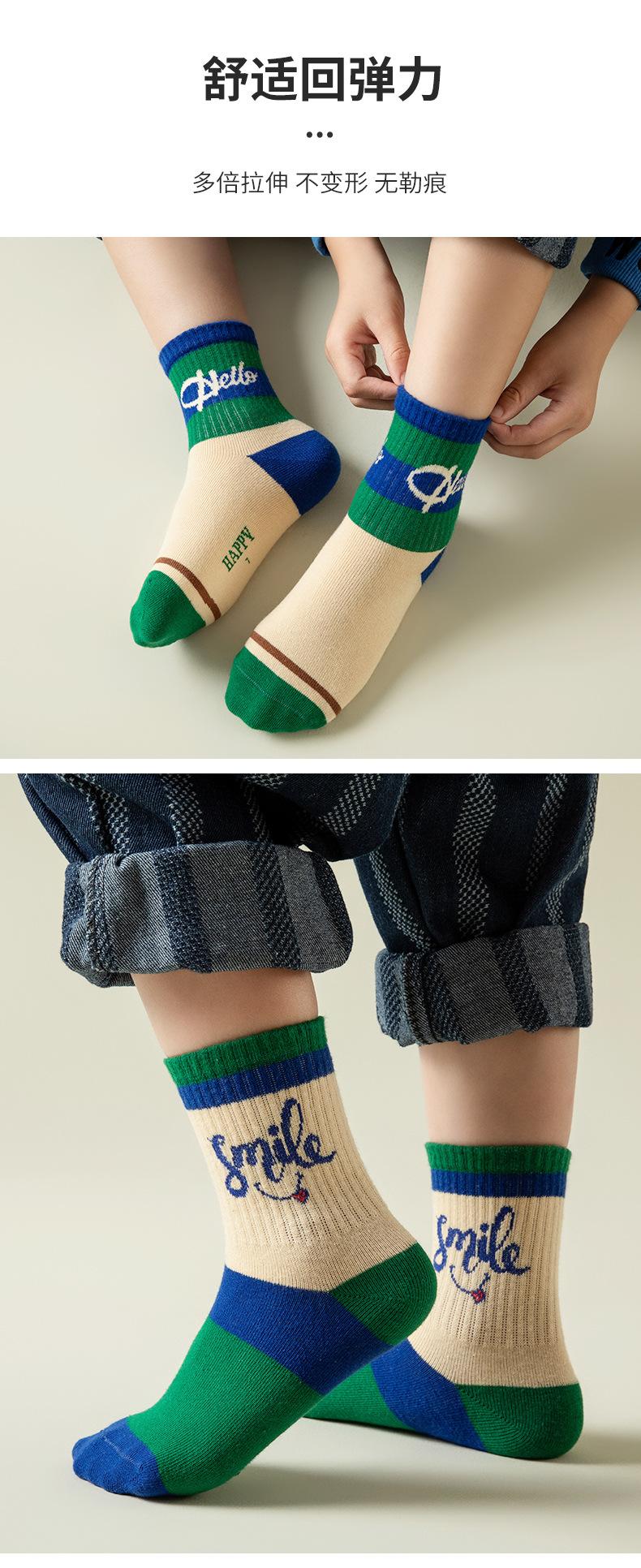 Calcetines Deportivos a Rayas para Niños al Mayoreo Otoño e Invierno Letras Niños y Niñas Calcetines Algodón Peinado Sin Costuras Estudiante Media Caña