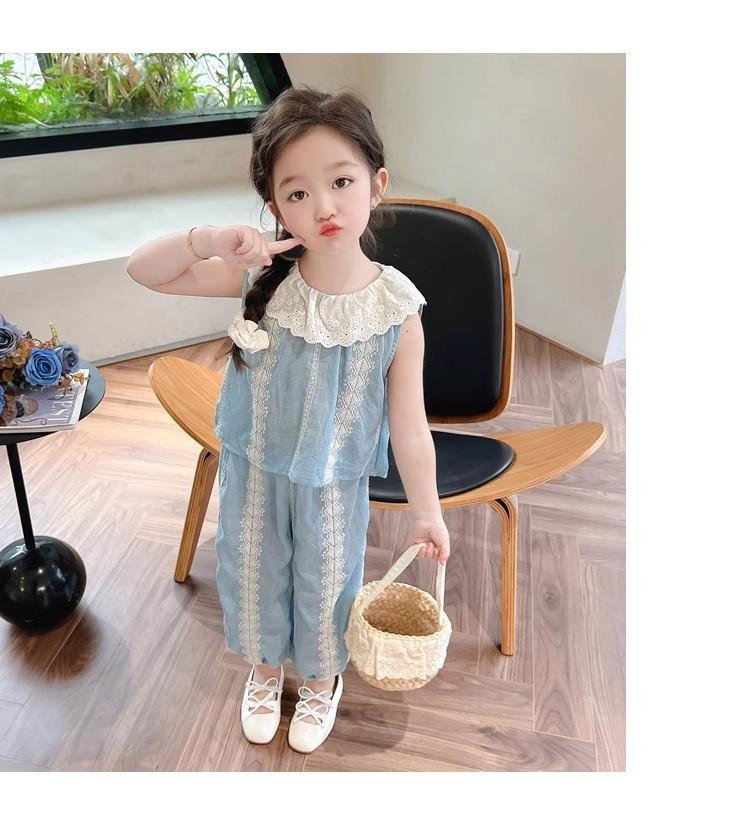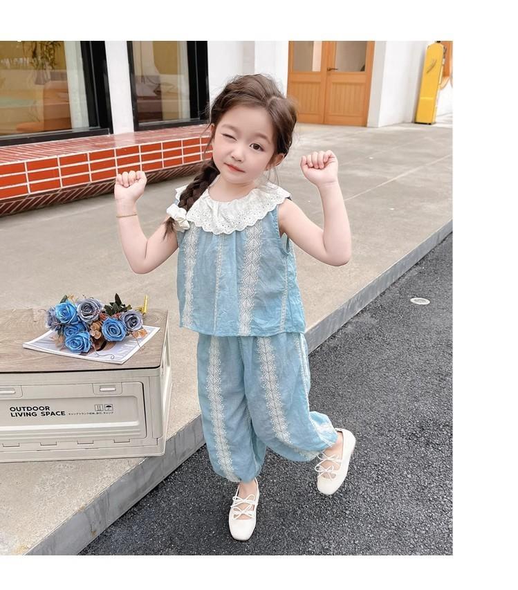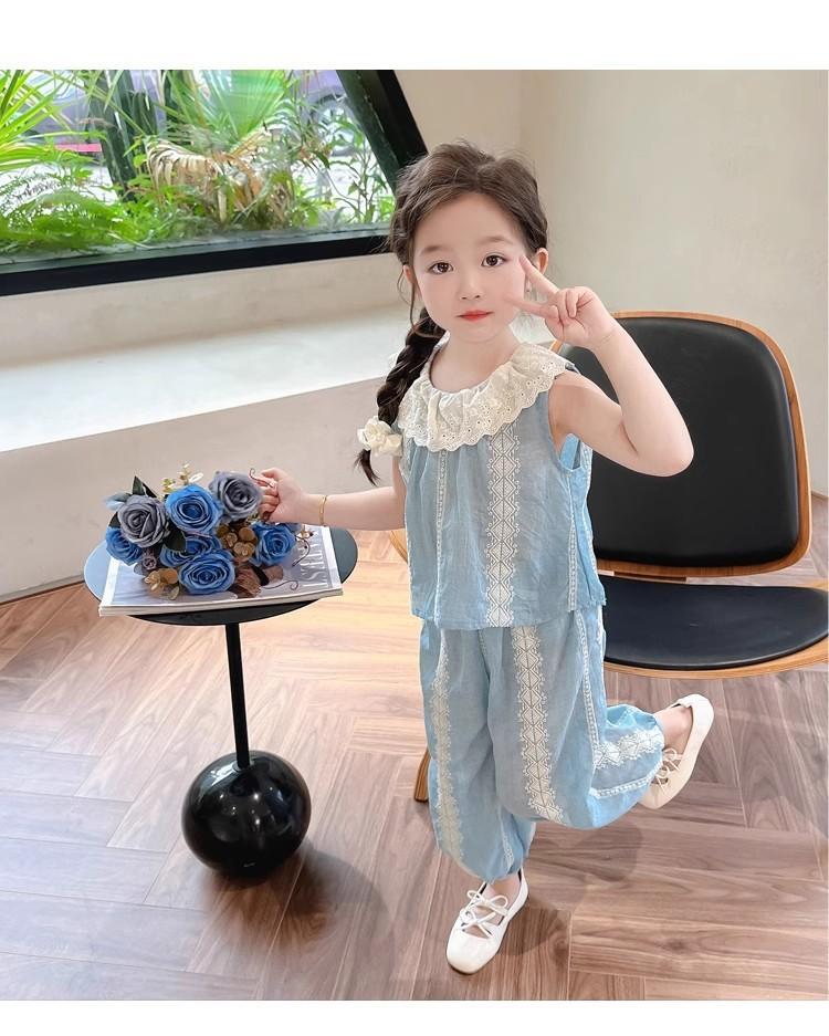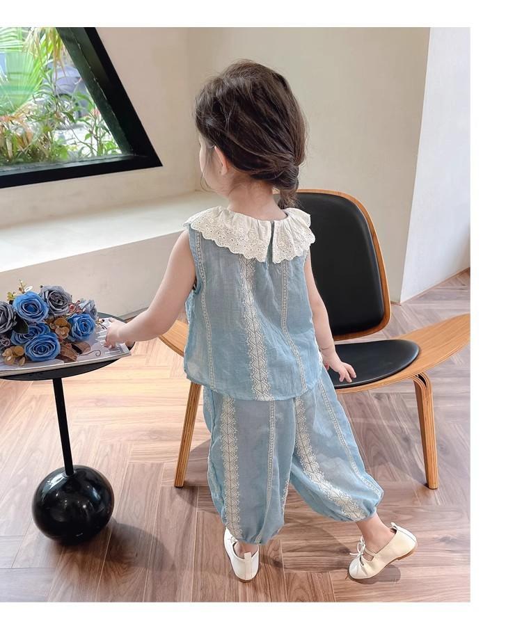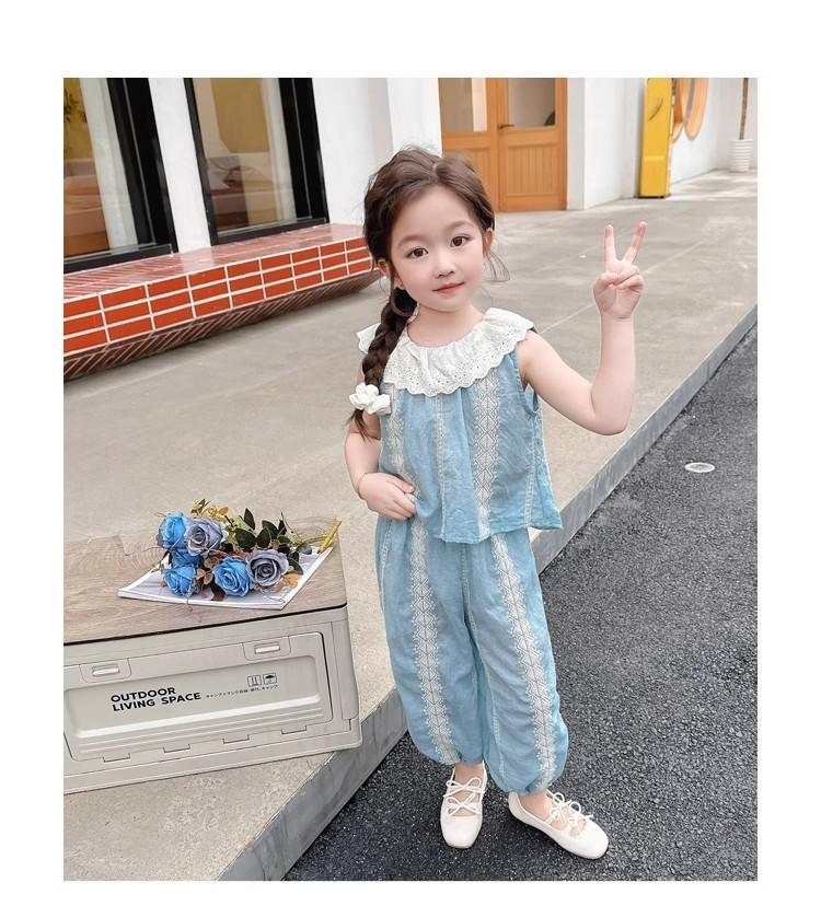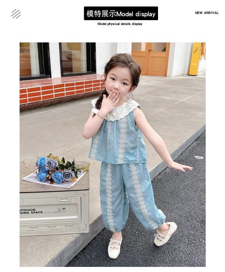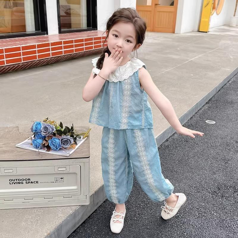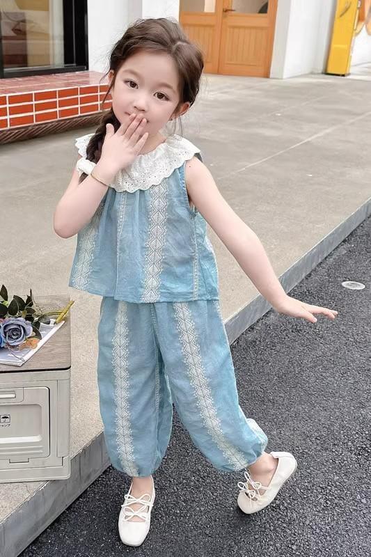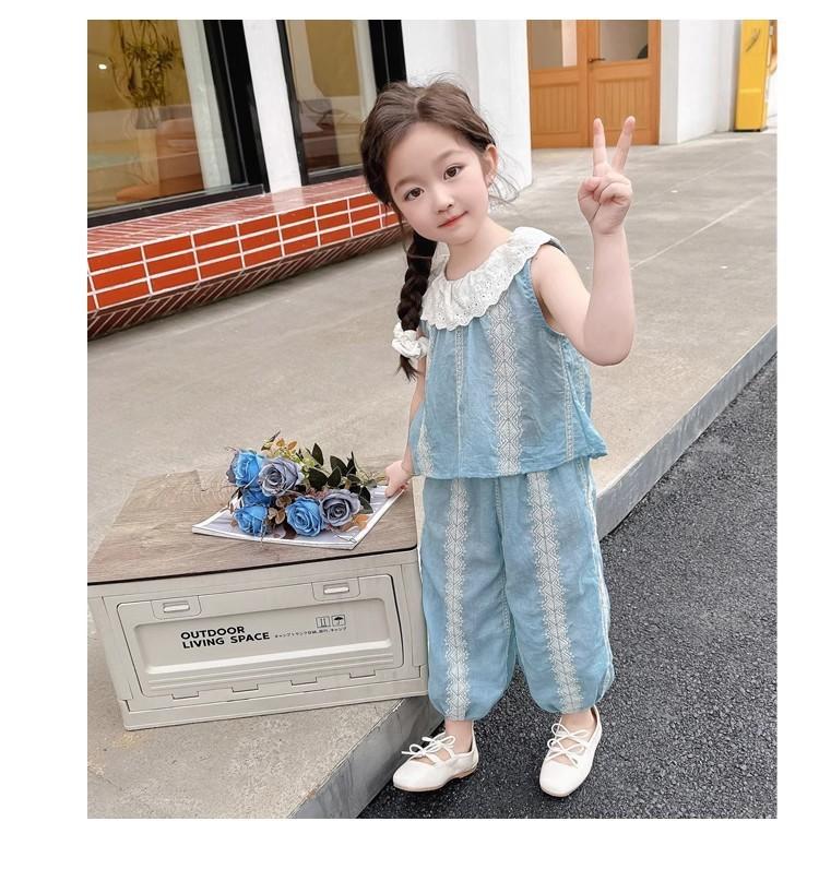 Compra Traje Casual de Verano para Niñas 2024 Estilo Bosque Ropa de Verano para Niños Cuello de Muñeca Fresco Pequeño Sin Mangas Bloomers Conjunto Completo al por mayor en Joom.pro