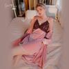 Guiruo Nuevo Sexy Espalda Descubierta Tentación Seda de Hielo Plus Almohadilla para el Pecho Recoger Correa Camisón Bata Conjunto Ropa para el Hogar 3372