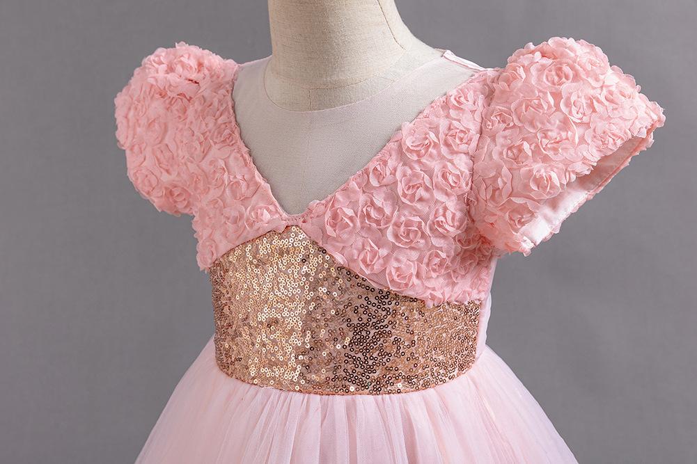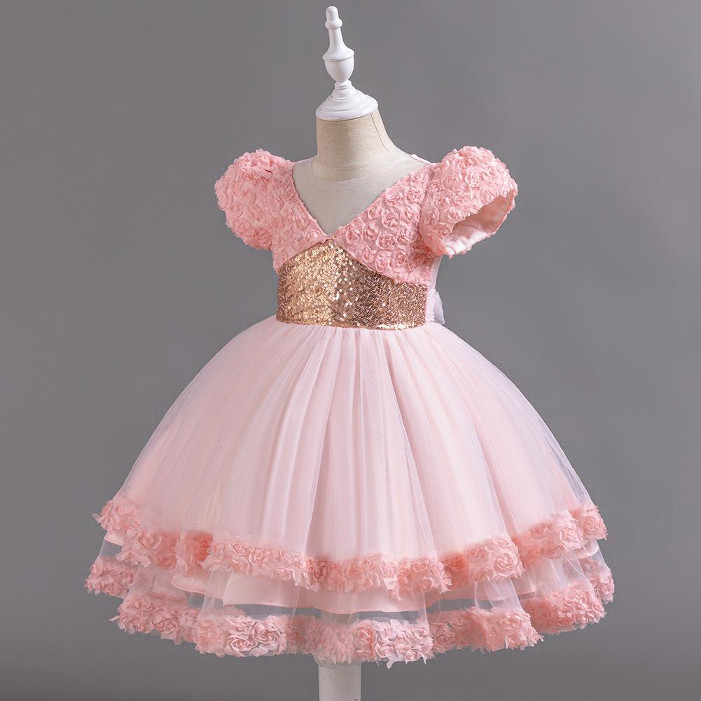 Nuevo vestido infantil, vestido de princesa con lazo, vestido largo con lentejuelas, ropa de actuación para niñas, ropa de actuación para niños