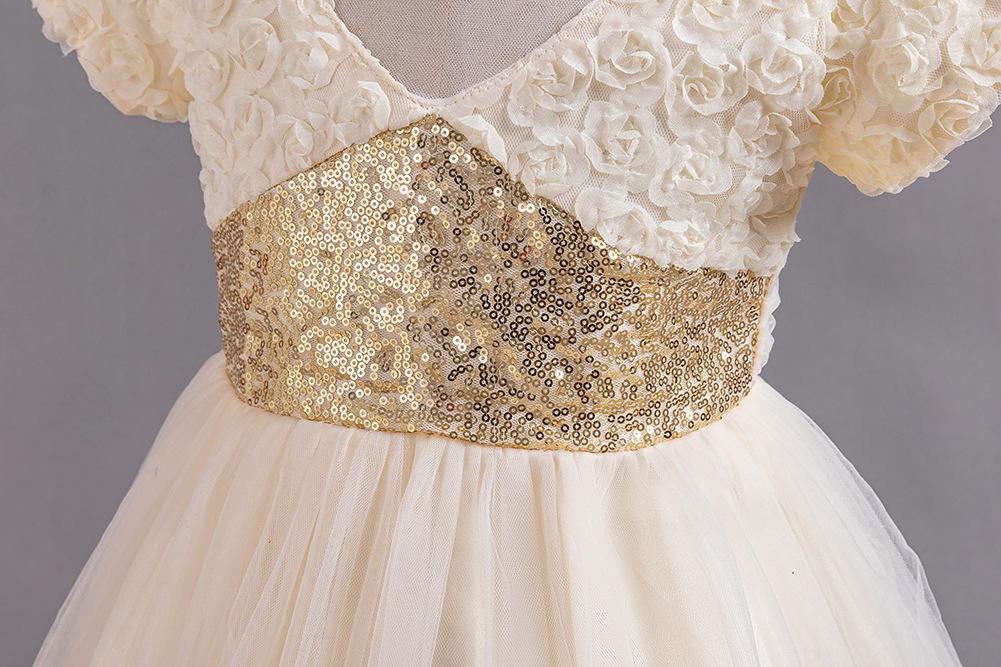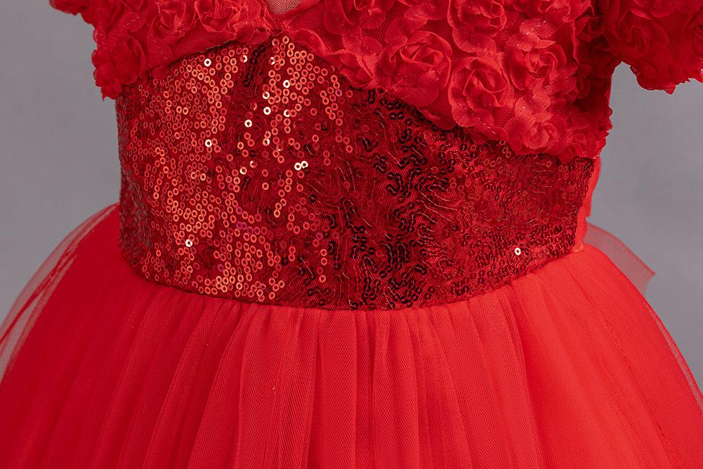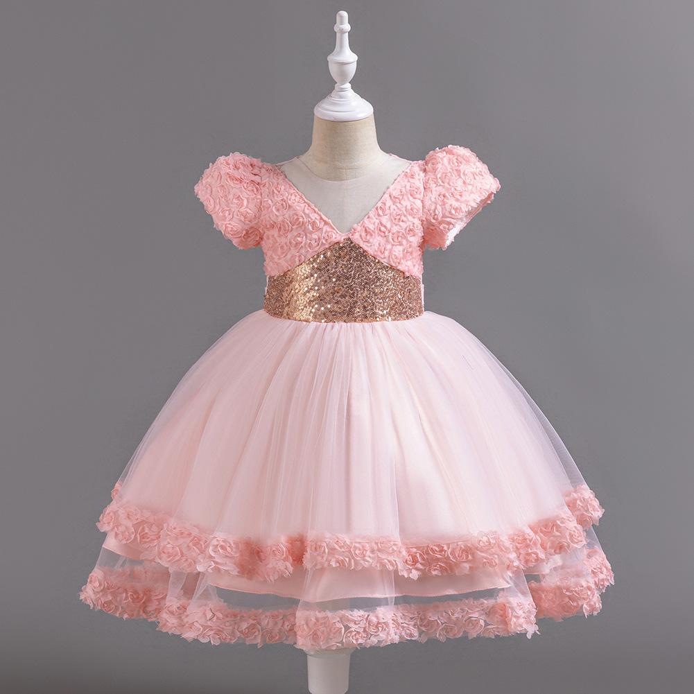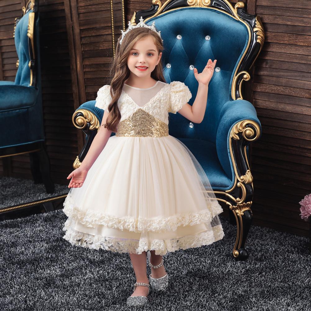 Vestido infantil de comercio exterior europeo y americano, vestido de novia de princesa de malla esponjosa, falda larga de lentejuelas, vestido de noche para niña mediana y grande