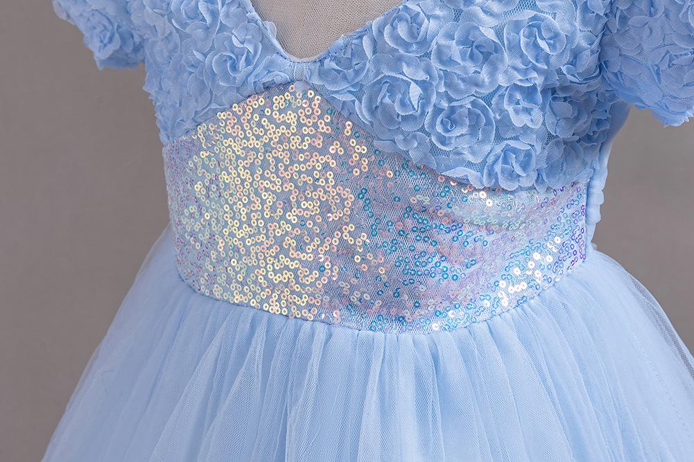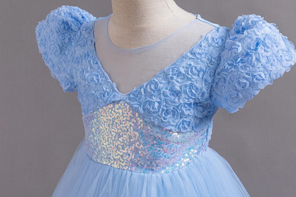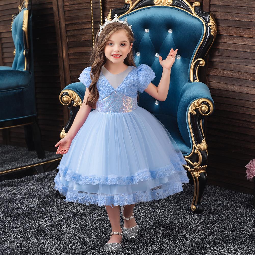 Vestido de princesa con lentejuelas de manga corta para niñas de Amazon, estilo europeo y americano, falda larga hasta el suelo, disfraz de Halloween