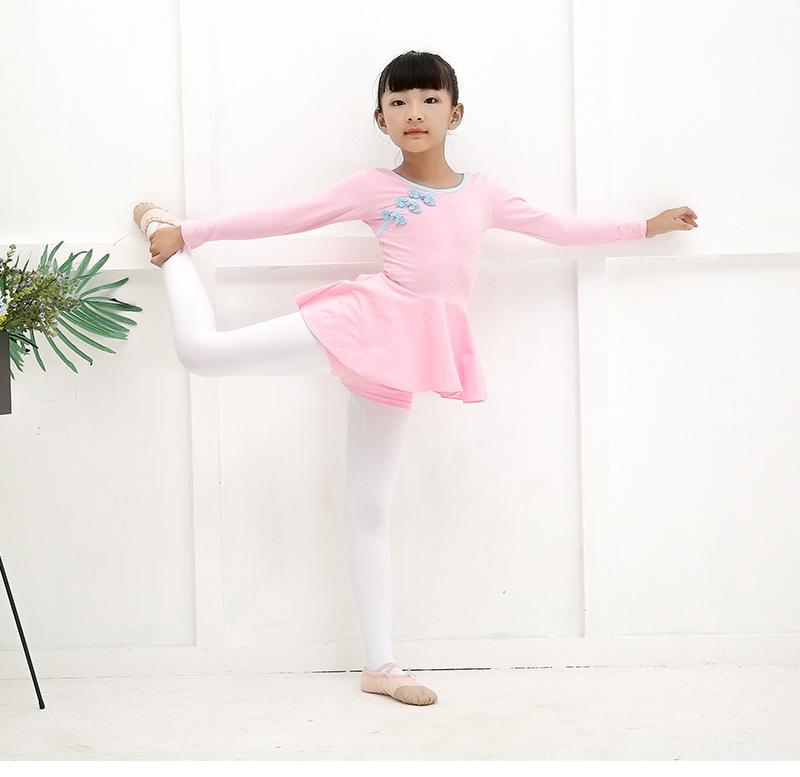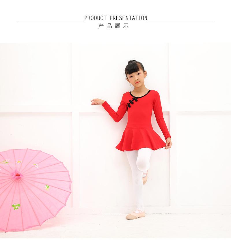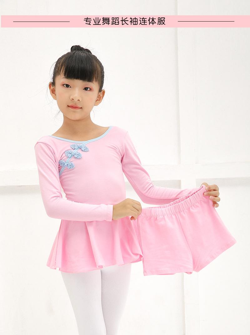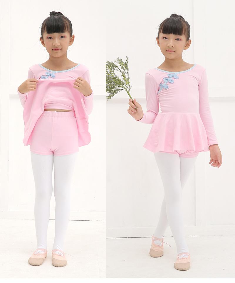 Traje de baile de ballet para niñas y niños, estilo chino, con hebilla, falda de manga larga, ropa de práctica para niños grandes, dulce
