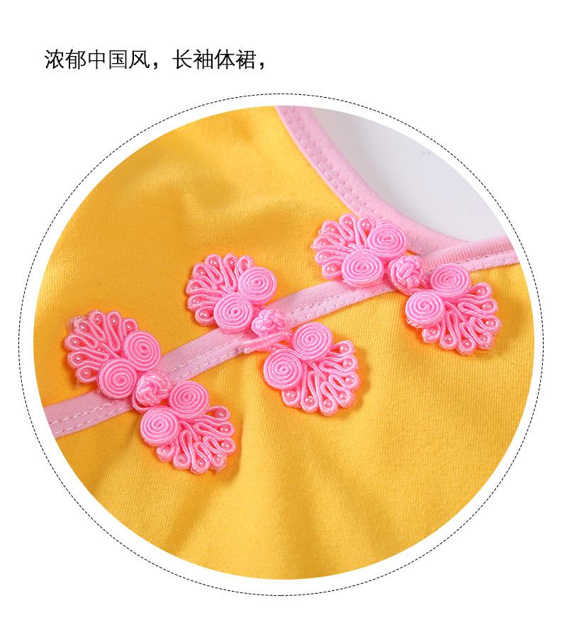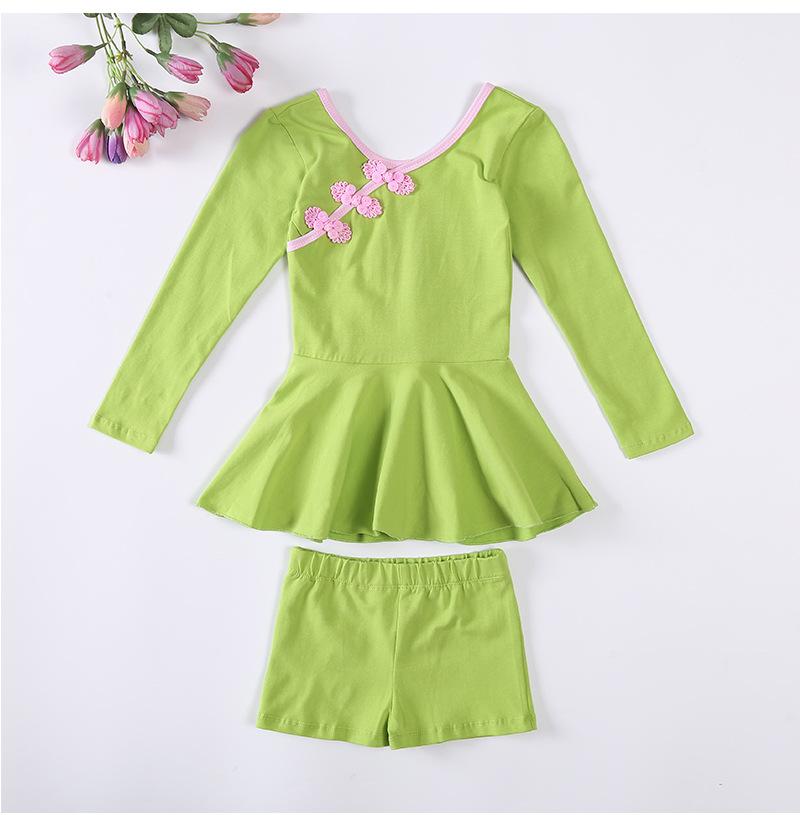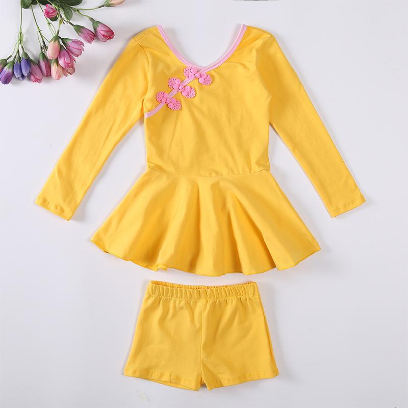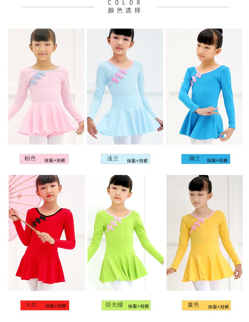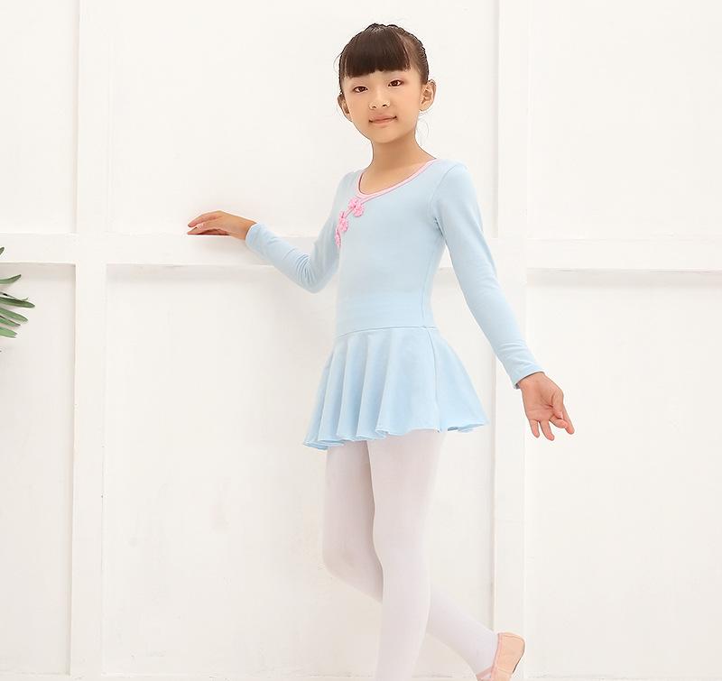 Traje de baile de ballet para niñas y niños, estilo chino, con hebilla, falda de manga larga, ropa de práctica para niños grandes, dulce