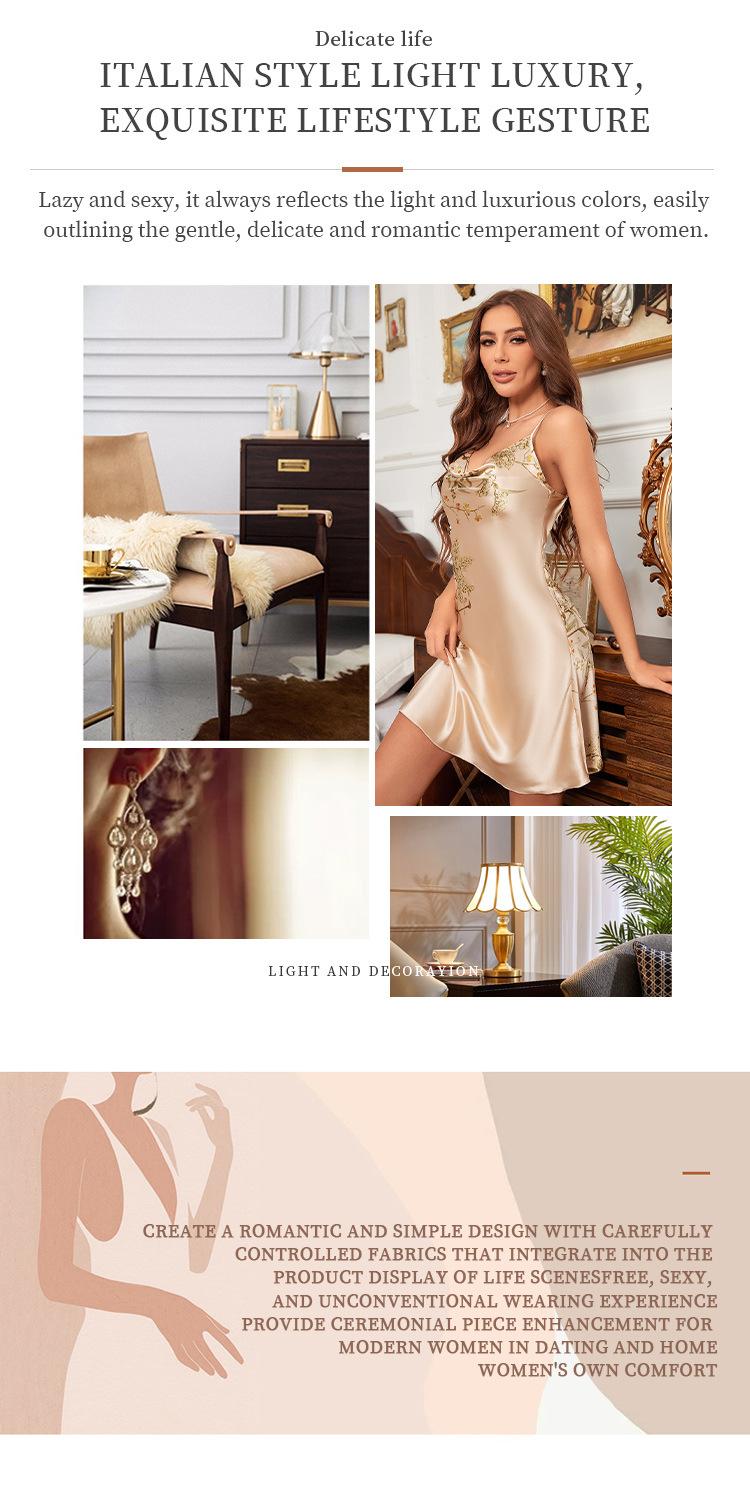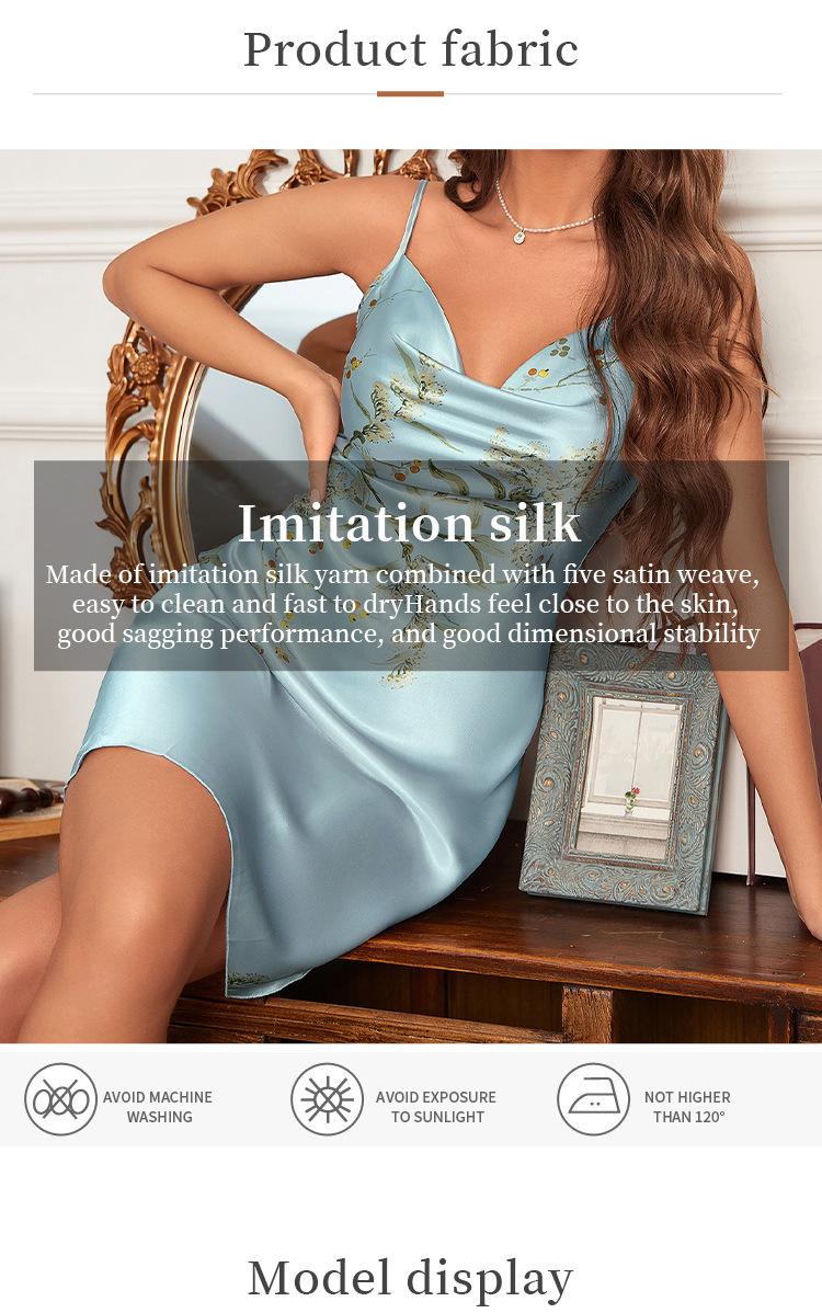 Nuevo Transfronterizo Casual Transpirable Tipo Seda Sexy Moda Camisón Sin Espalda Falda con Tirantes Camisón de Seda de Hielo