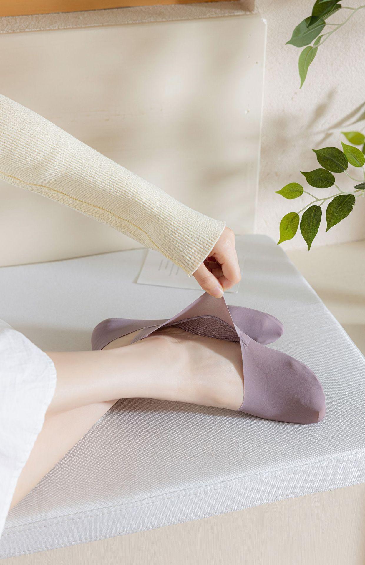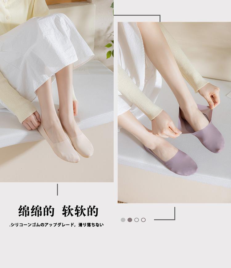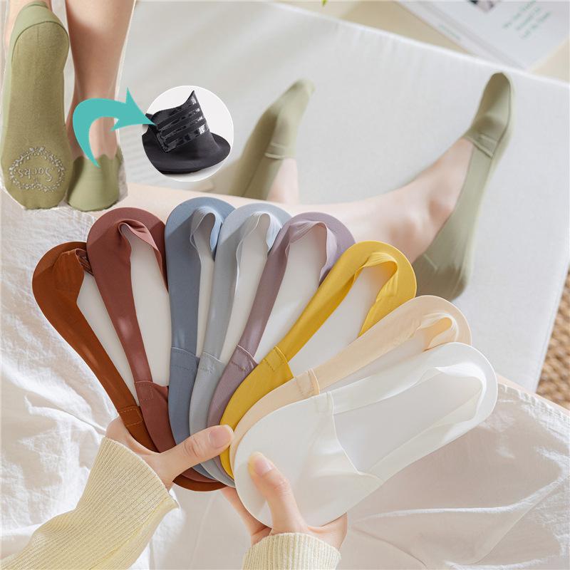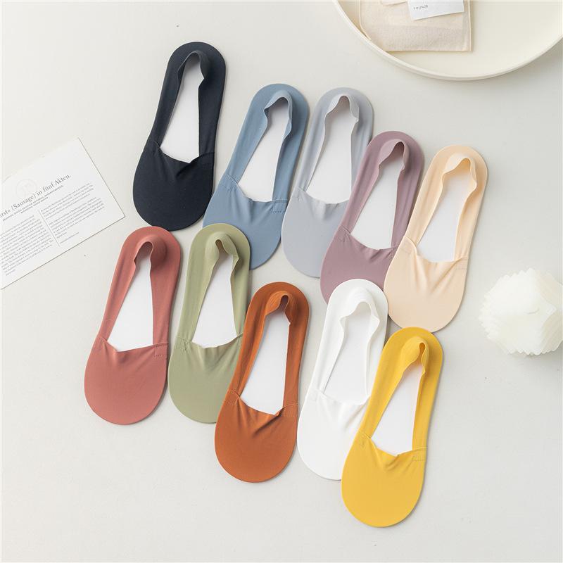 Calcetines náuticos de seda de hielo para mujer, de primavera y verano, finos, de algodón puro, con corte arbitrario, de boca baja, invisibles y con tacón antideslizante.