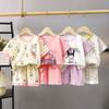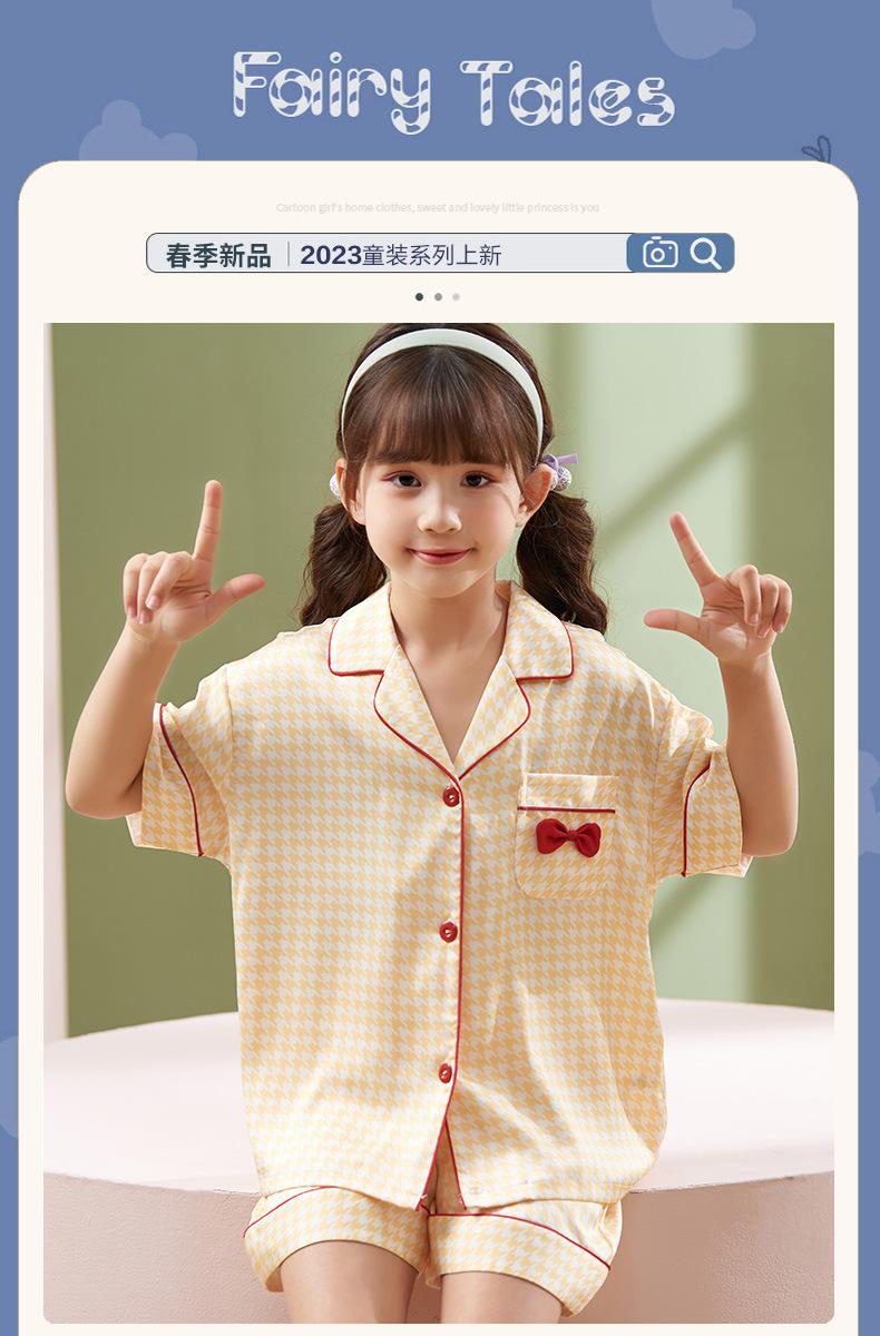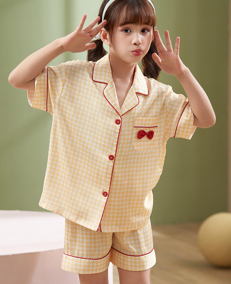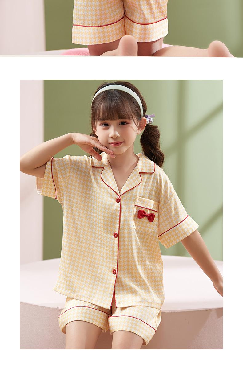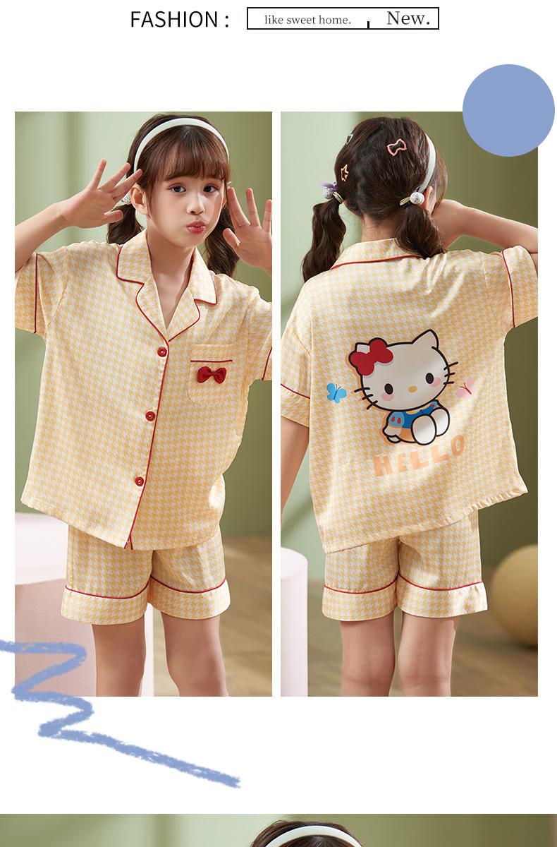 Pijamas para niños, de verano, para mujer, de seda fina de nieve, de manga corta, de dos piezas, con bonitos dibujos animados, para el hogar