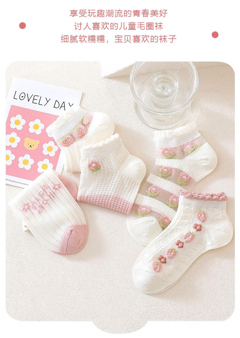 Nuevos calcetines de verano para niños, calcetines finos de algodón con dibujos de fresas y encaje, calcetines de malla para niñas, calcetines sin hueso de princesa