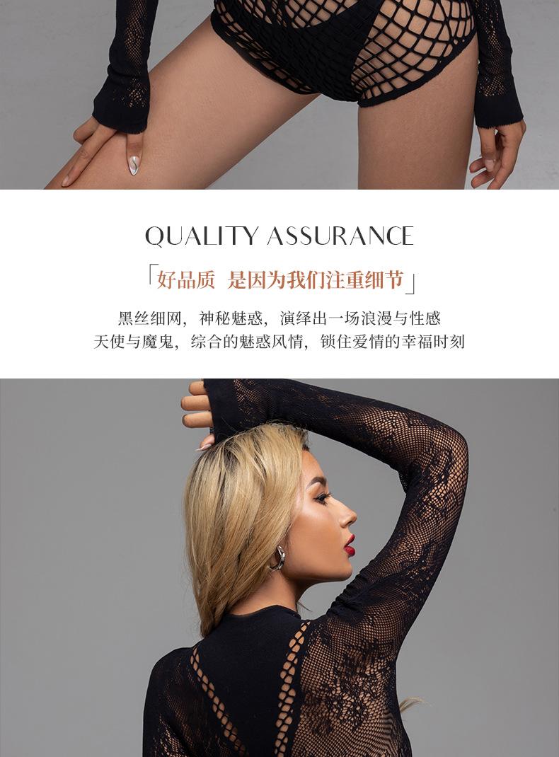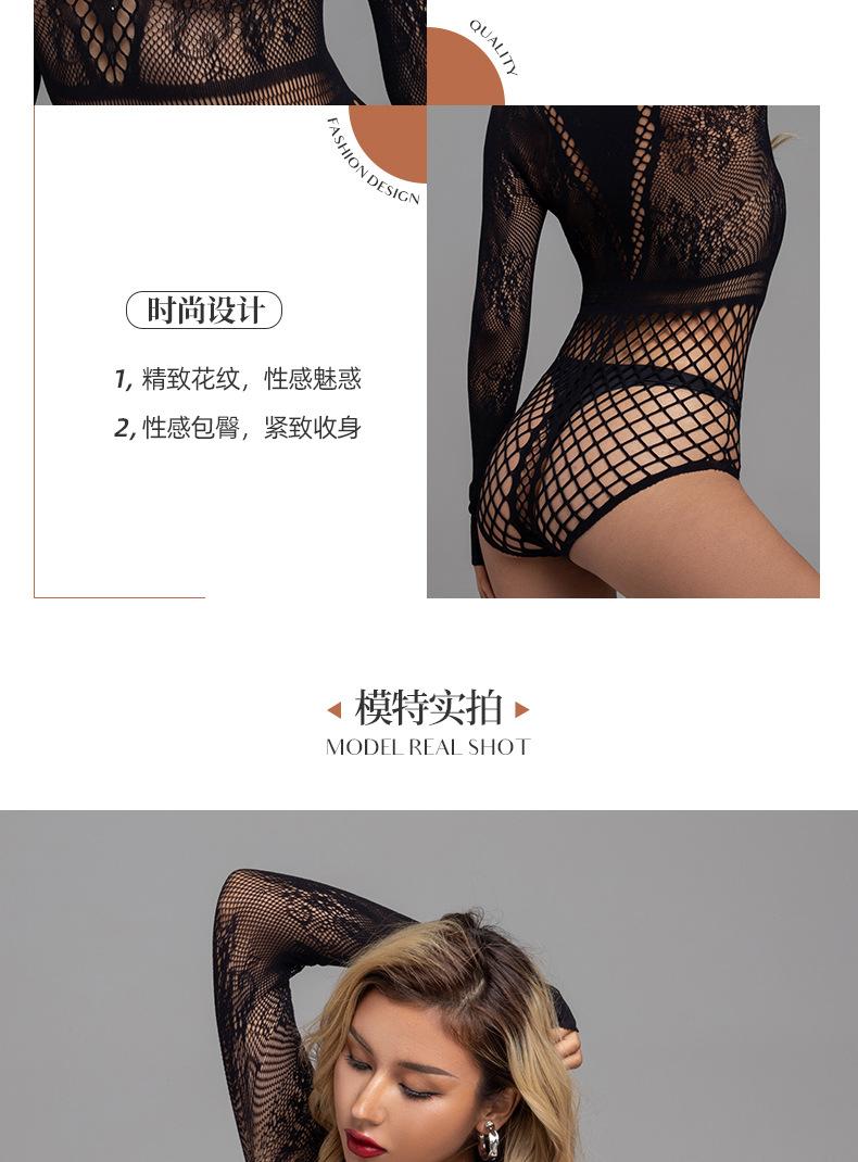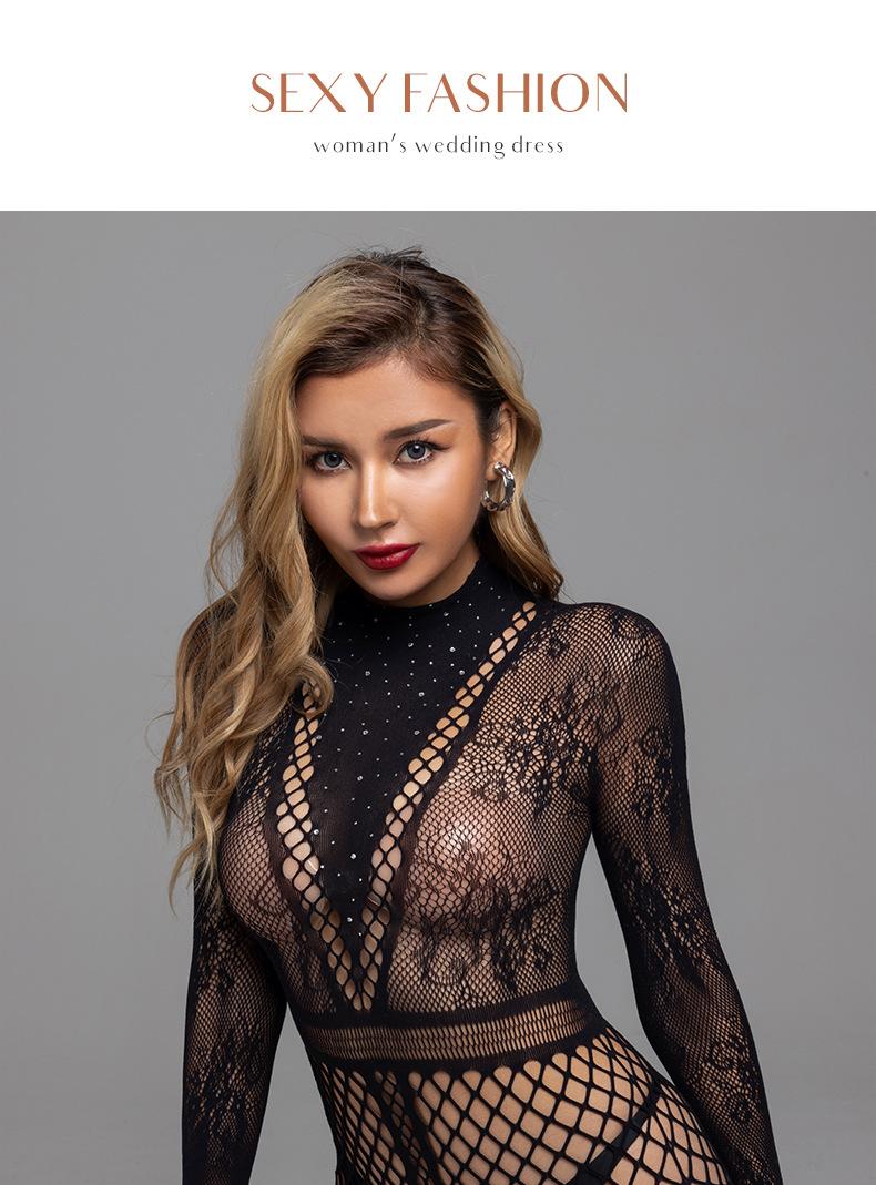 Bikini de perforación caliente nuevo europeo y americano, ropa interior sexy de manga larga, bolso negro, vestido de red de pesca a la cadera, redes sexys