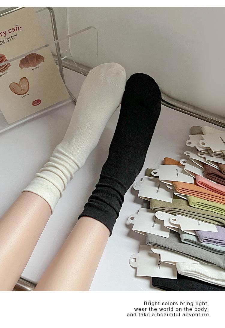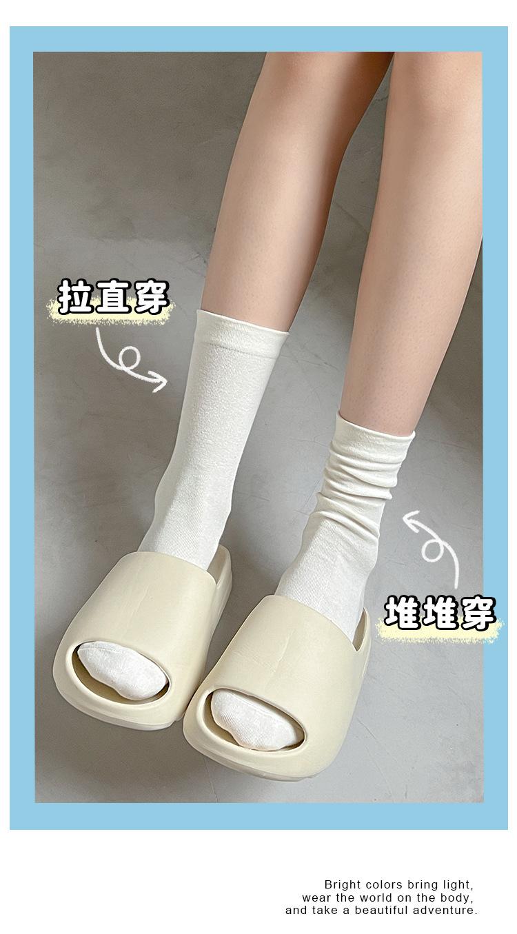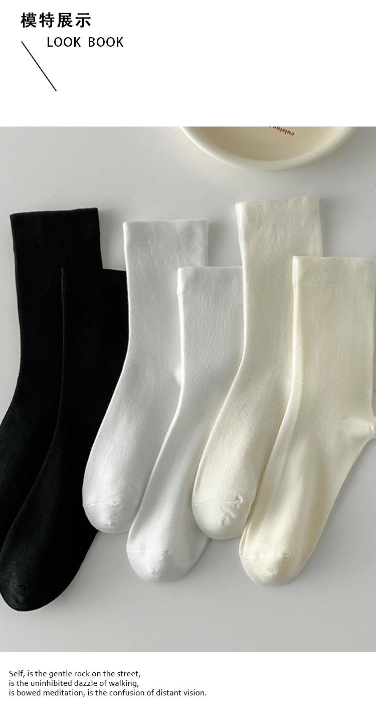 Calcetines blancos de algodón para mujer, de primavera y otoño, de longitud media, con costuras sin hueso, de color liso, combinables con todo, japoneses.