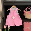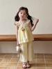 Traje de verano para niñas 2023, nuevo conjunto de verano para bebés, estilo occidental, de manga corta, de dos piezas, a la moda.
