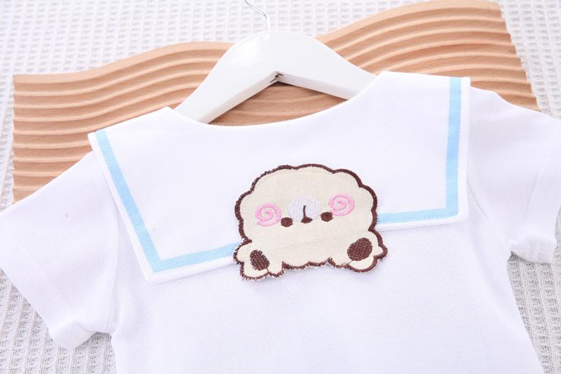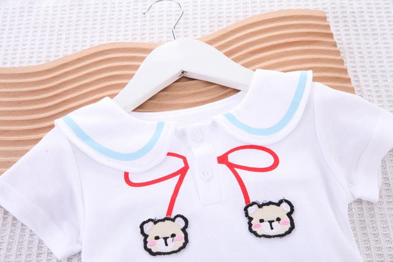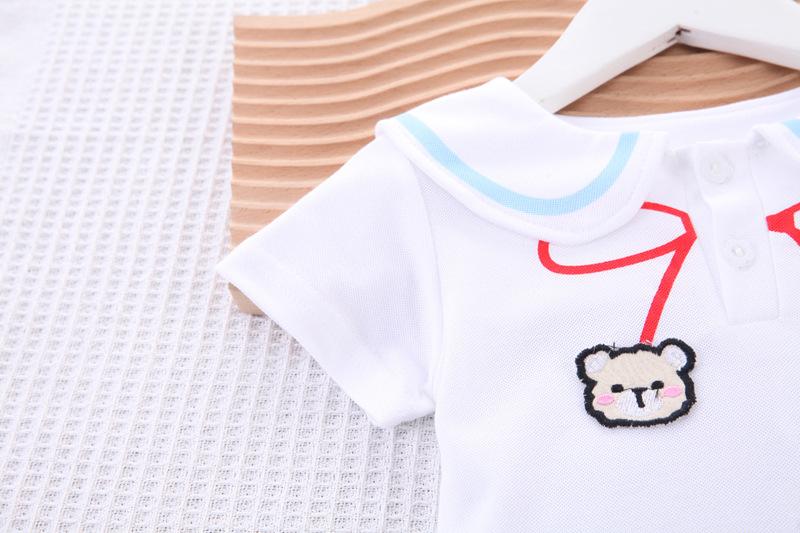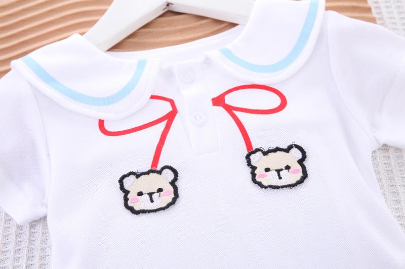White summer POLO navy collar bear short sleeve suit, Blue summer POLO navy collar bear short sleeve suit