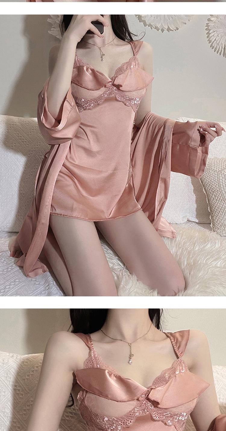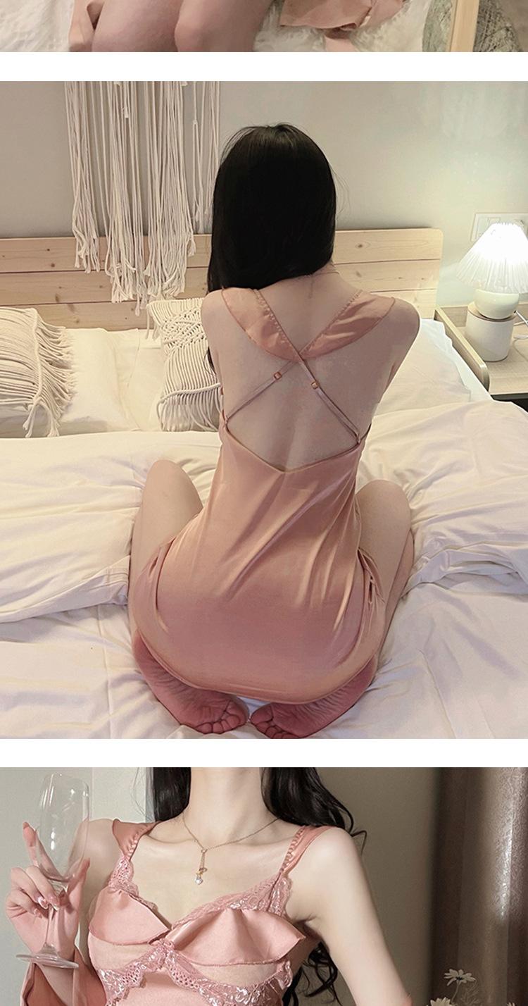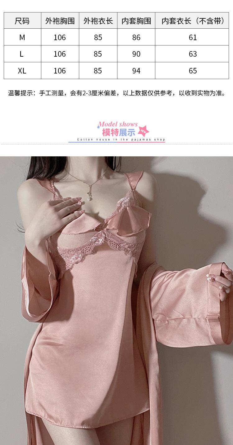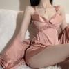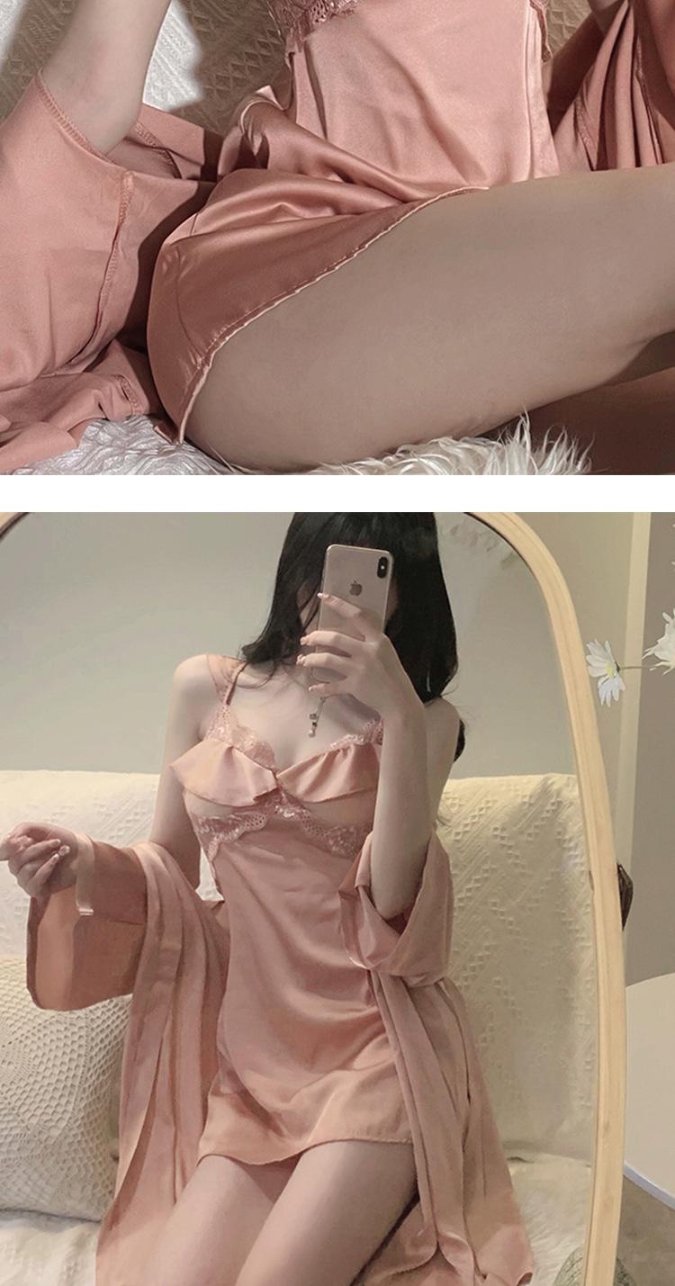 Camisón de seda de hielo de primavera y verano, camisón sexy de encaje con tirantes, bata de baño con almohadilla para el pecho, pijama, ropa divertida para el hogar para el cabello