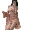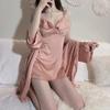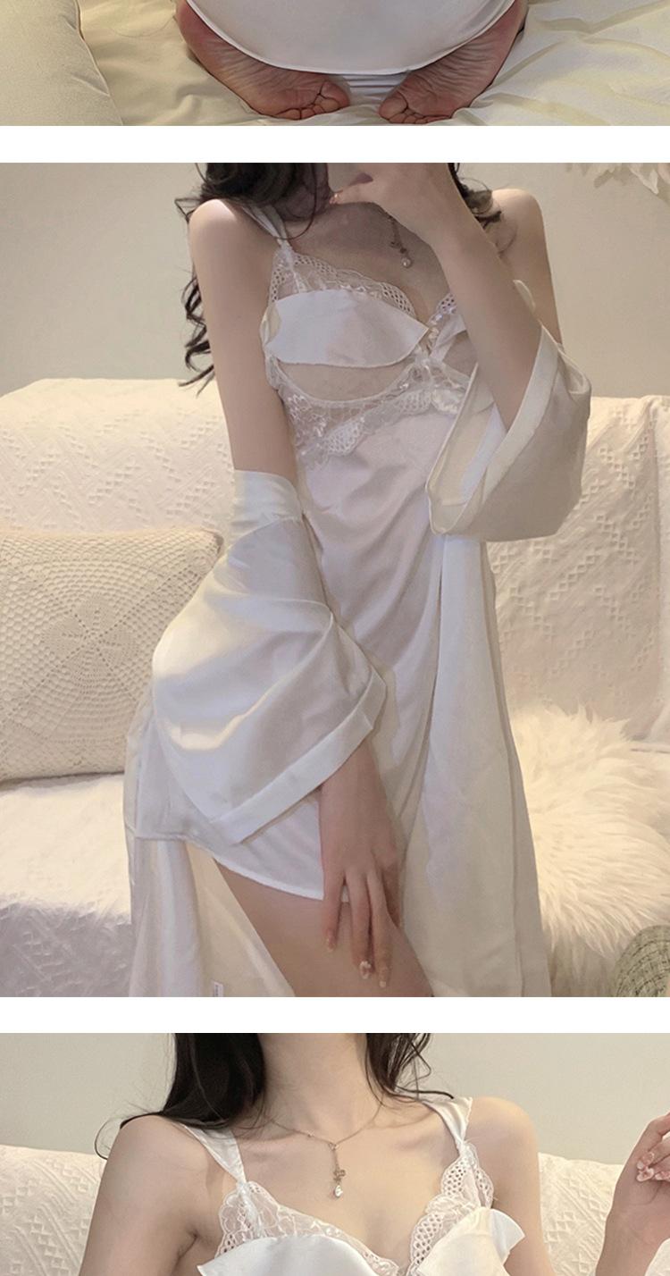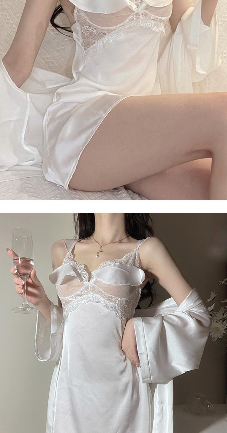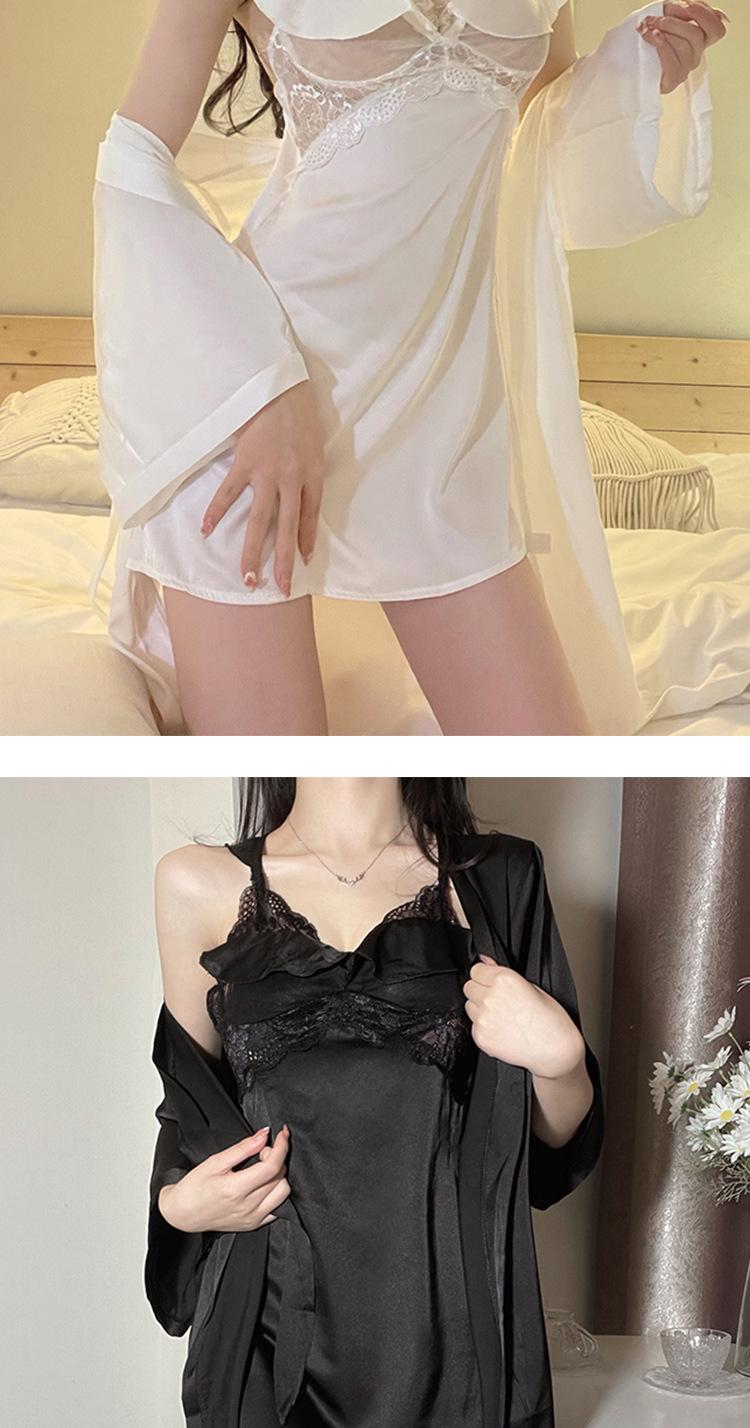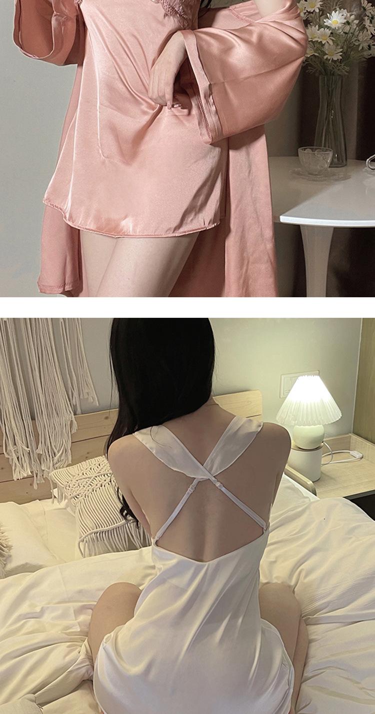 Camisón de seda de hielo de primavera y verano, camisón sexy de encaje con tirantes, bata de baño con almohadilla para el pecho, pijama, ropa divertida para el hogar para el cabello