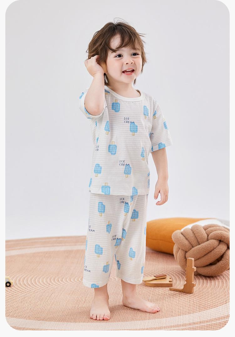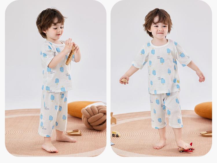 [Colección de pijamas de verano] Ropa de casa para bebé Doodle Pijama fino de verano para niños Ropa de verano para niñas