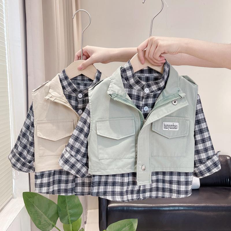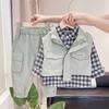 1-año de edad niño guapo traje de otoño 2 bebé primavera y otoño chaleco conjunto de tres piezas 3 marea infantil 4 bebé ropa infantil de otoño