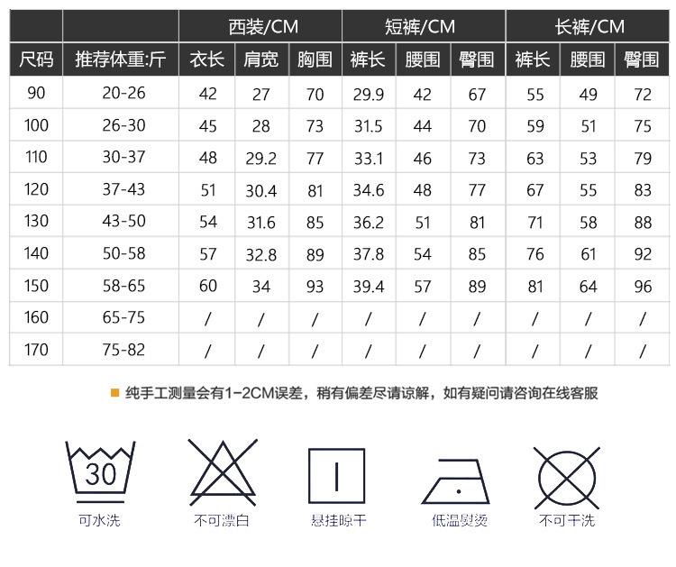 Summer two-piece suit (shorts), Summer three-piece suit (shorts), Spring and autumn two-piece suit (trousers),...