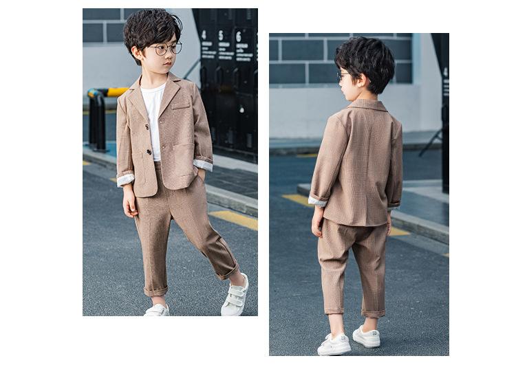Ropa nueva para niños primavera y verano 2023 traje para niños traje coreano casual traje pequeño a cuadros conjunto de dos piezas ventas directas de fábrica
