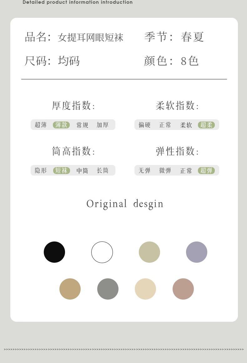 Black, White, Milky white, Khaki, Light gray, Pink, Purple, Green