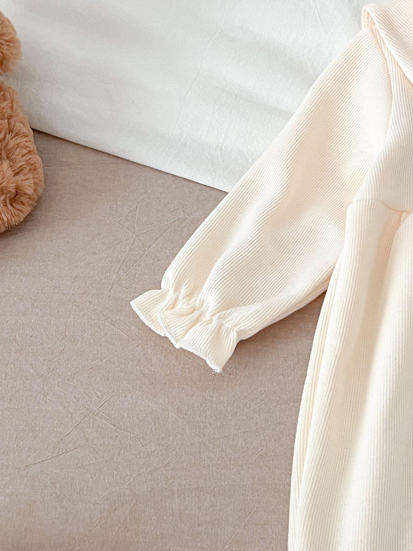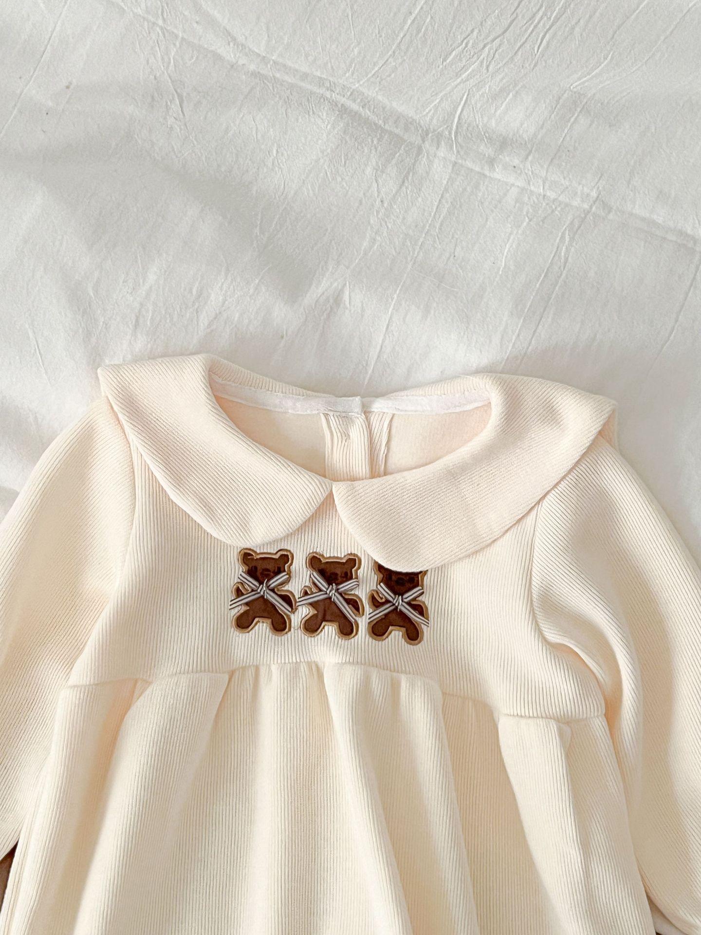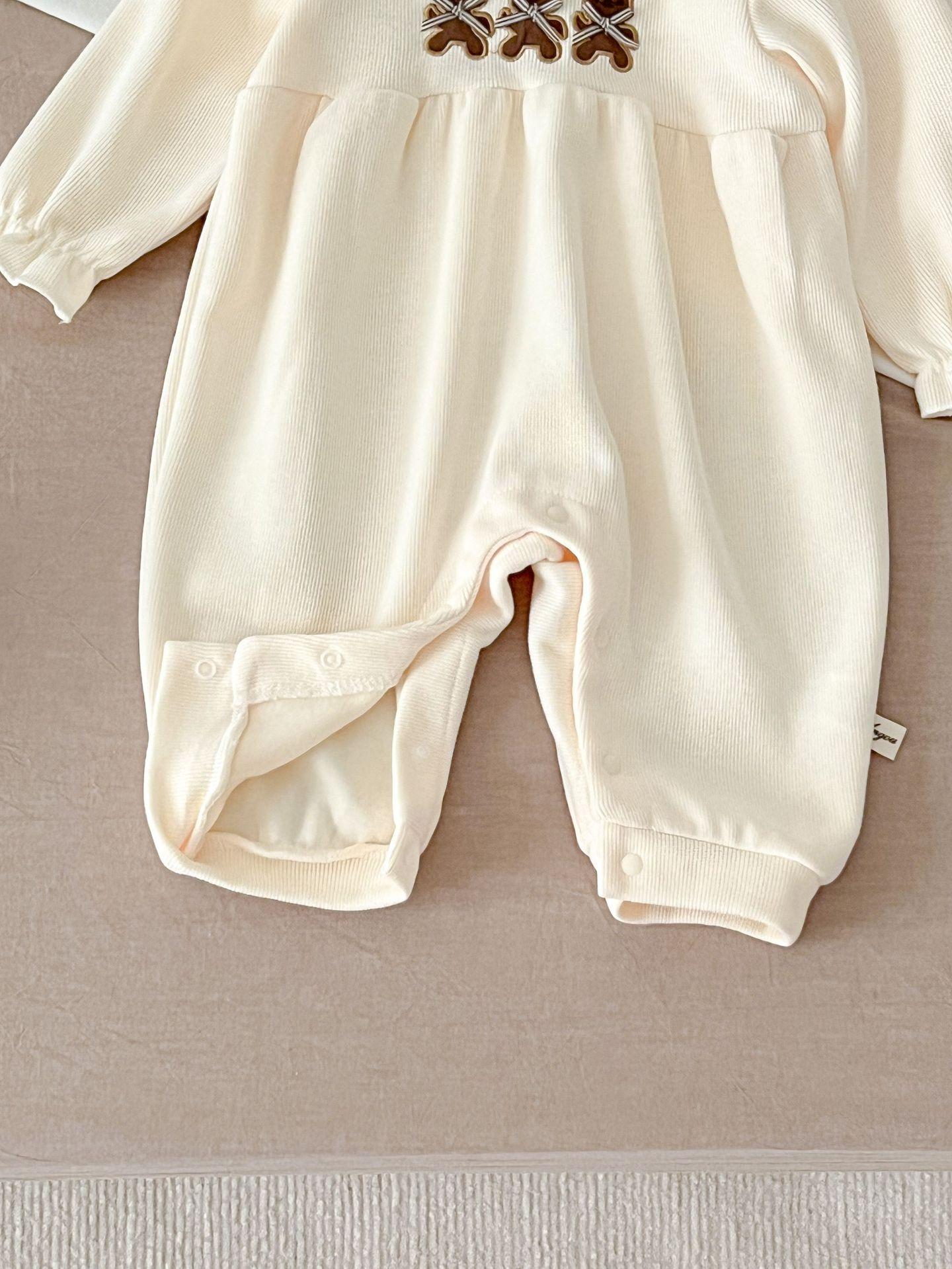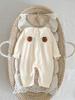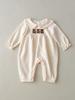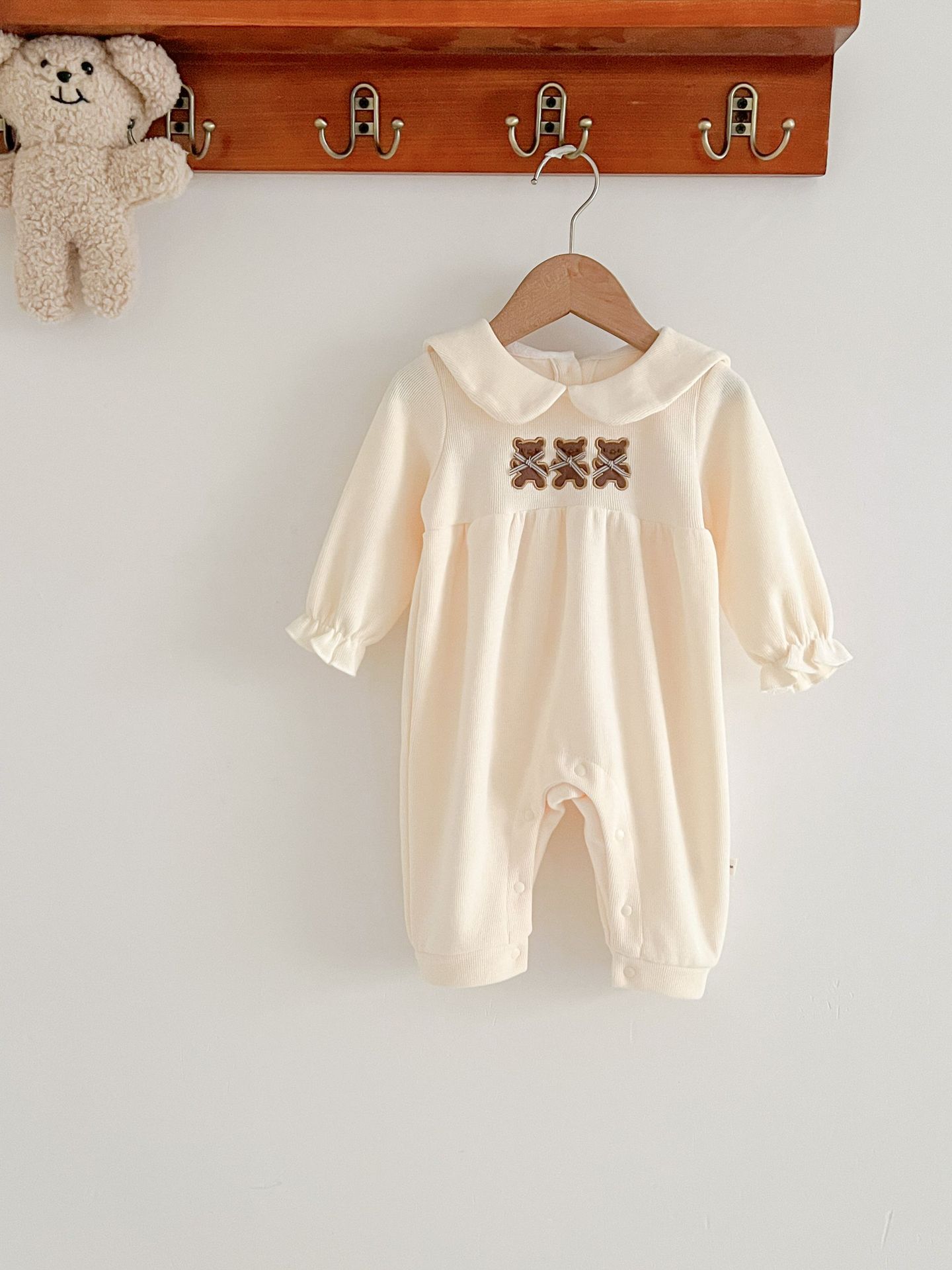 Mono de bebé de otoño 2023 con cuello de muñeca de oso, mono de color sólido súper lindo para bebé