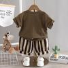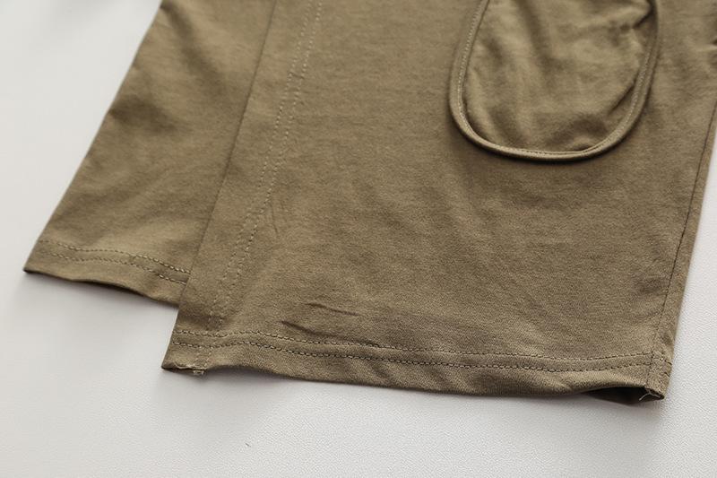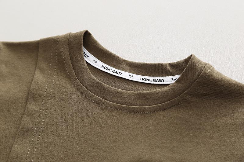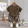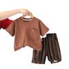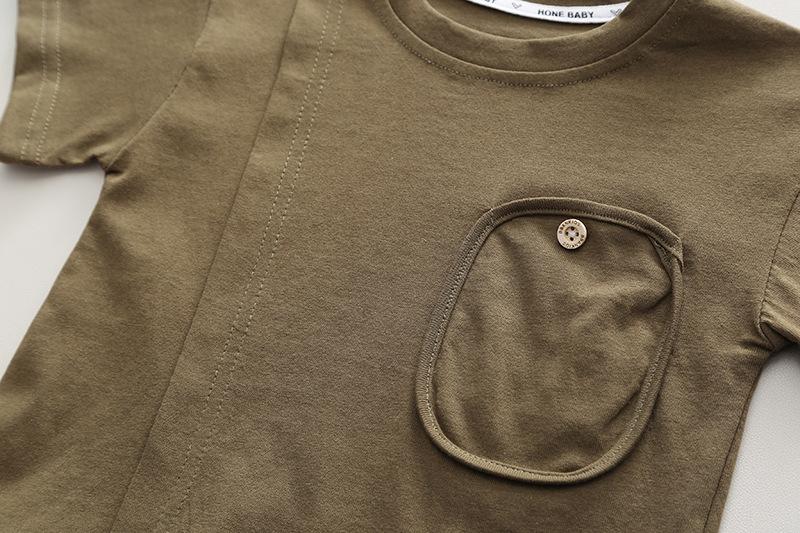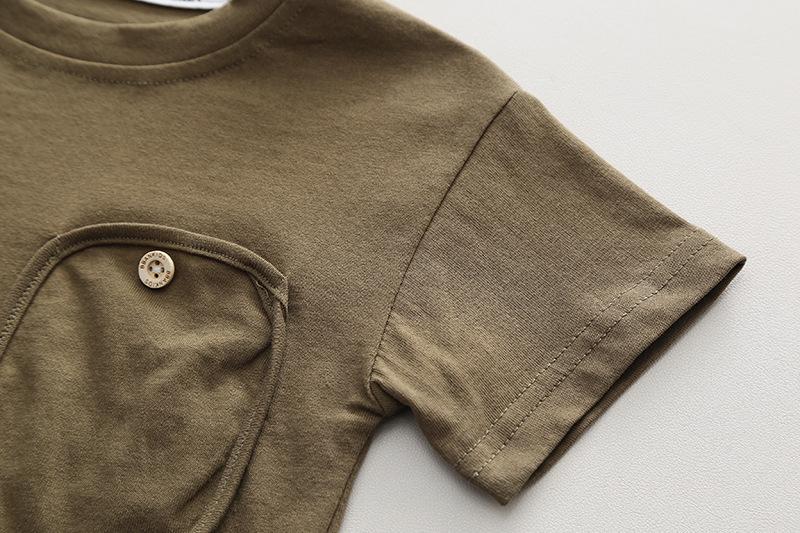 Conjunto de dos piezas informal de manga corta con cuello redondo y bolsillos de color liso para niño, verano 2023