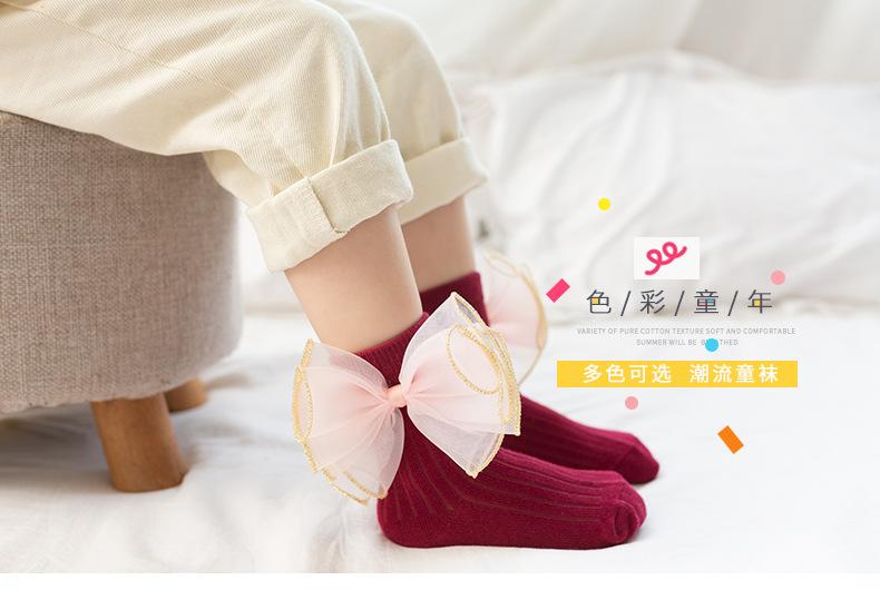 Calcetines de algodón para niñas, primavera y otoño, finos, de verano, con lazo, bonitos y cortos de encaje, para niñas pequeñas.