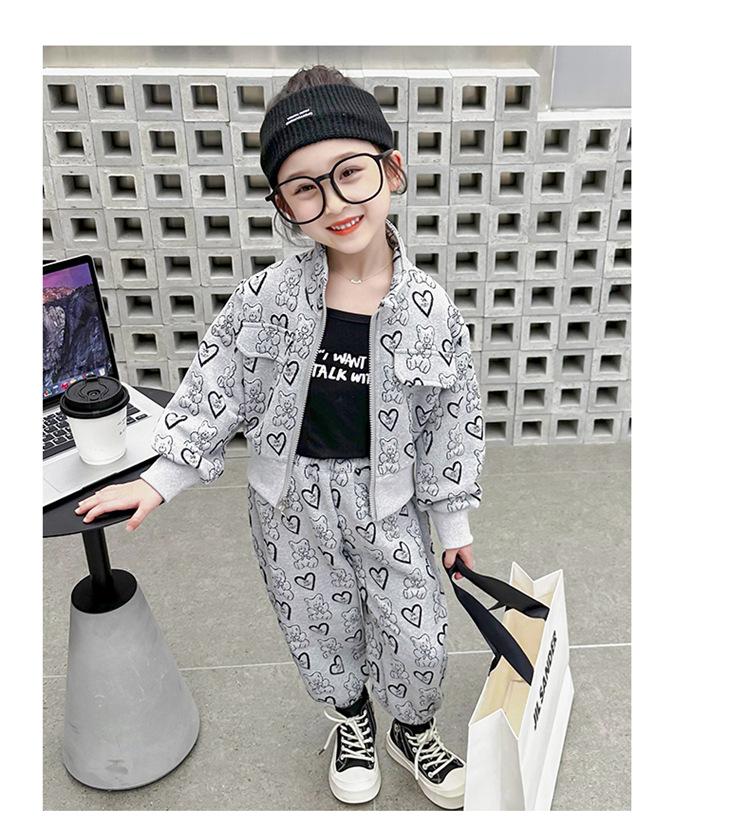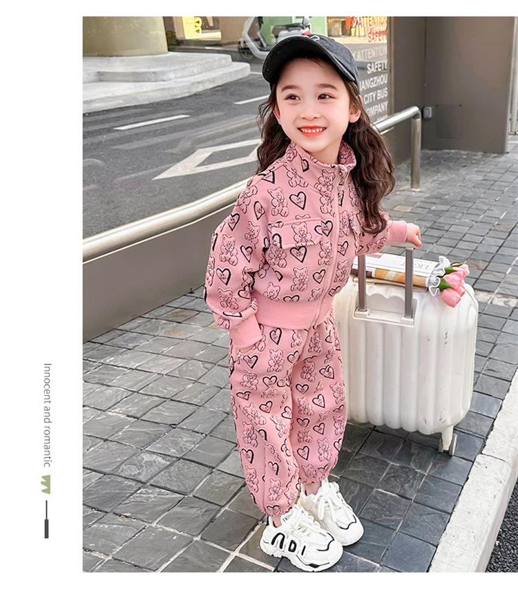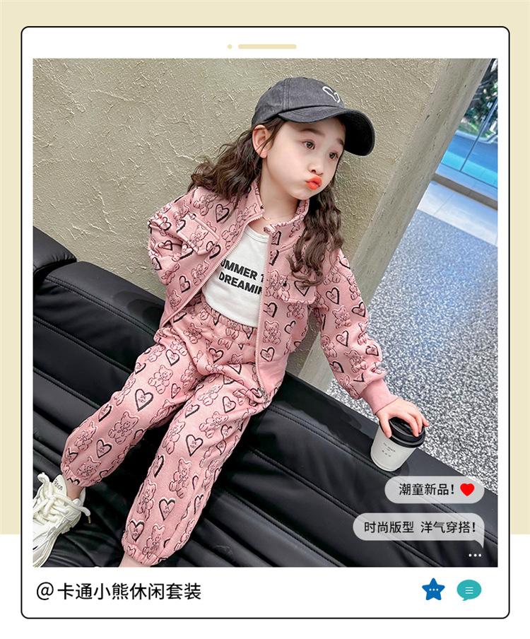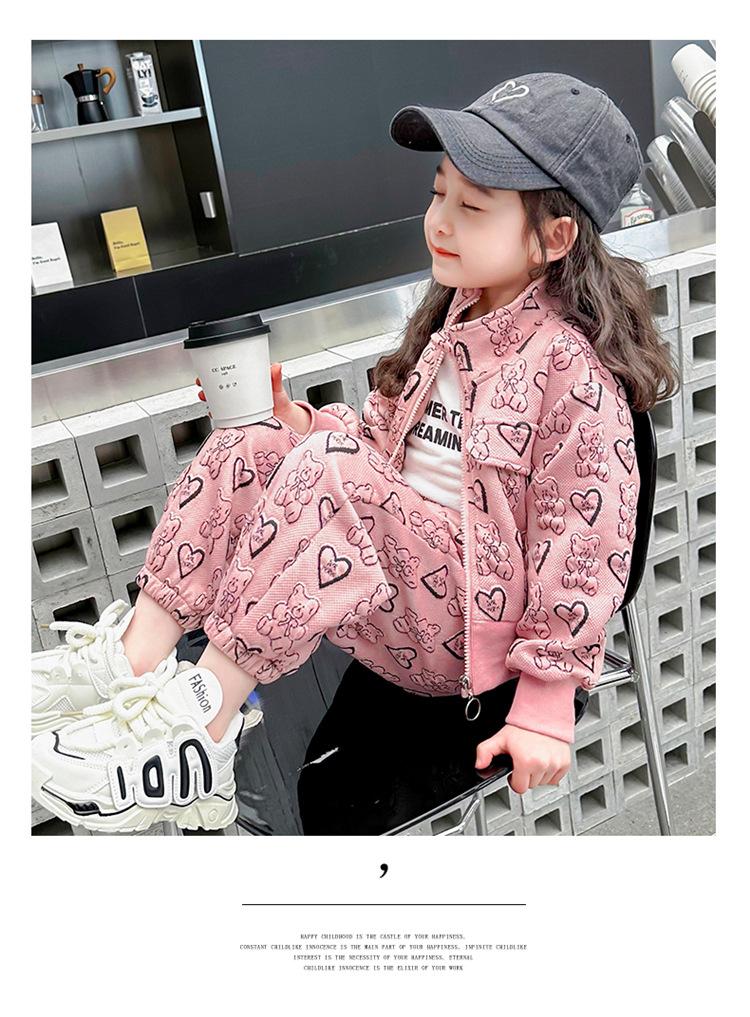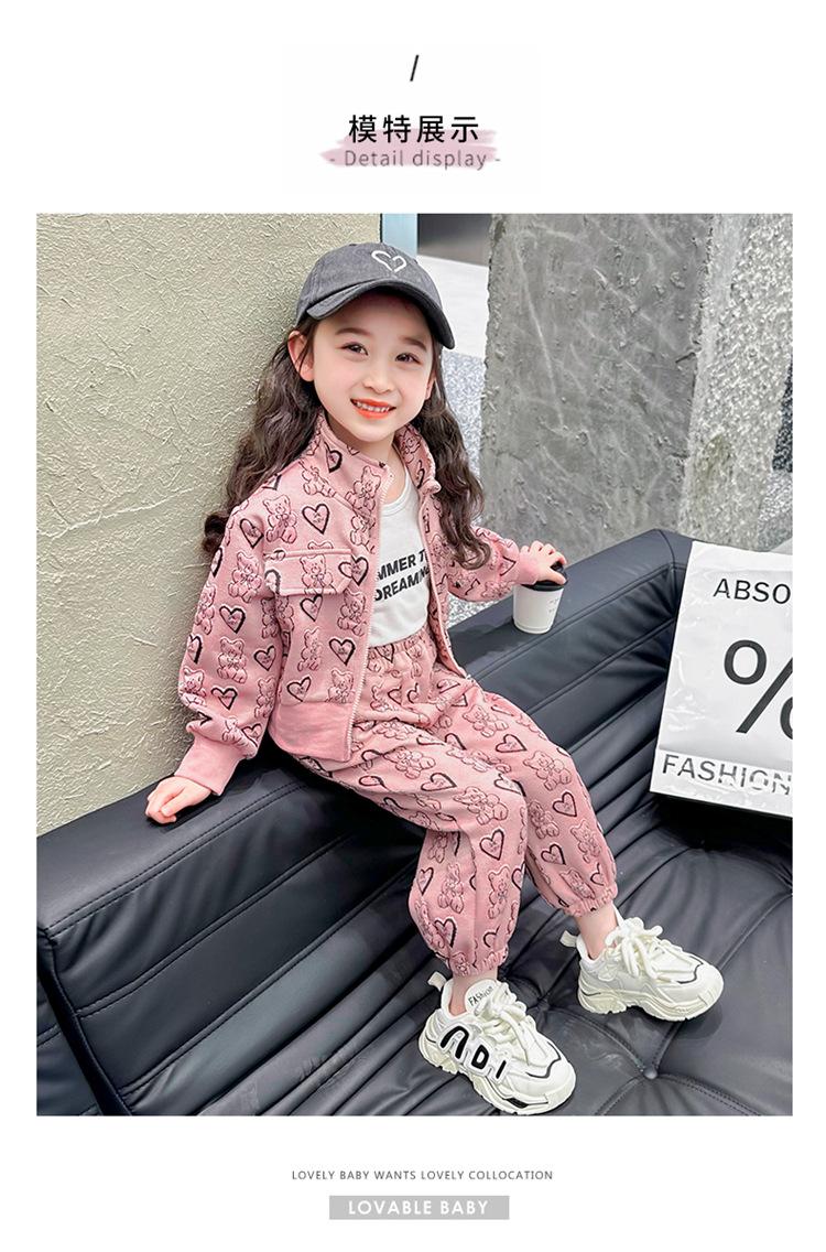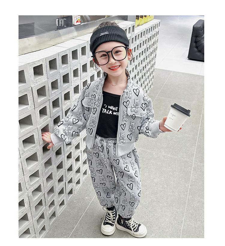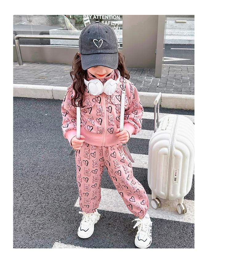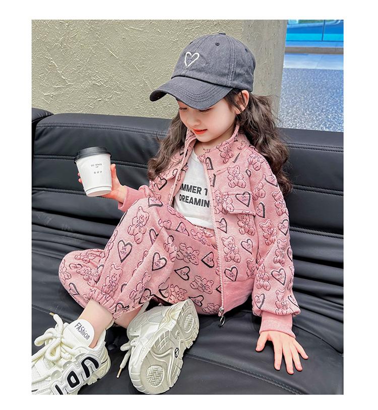 Traje Casual de Oso Tridimensional para Niñas 2024 Primavera y Otoño Nueva Ropa Infantil Moderna Conjunto Casual Deportivo de Dos Piezas