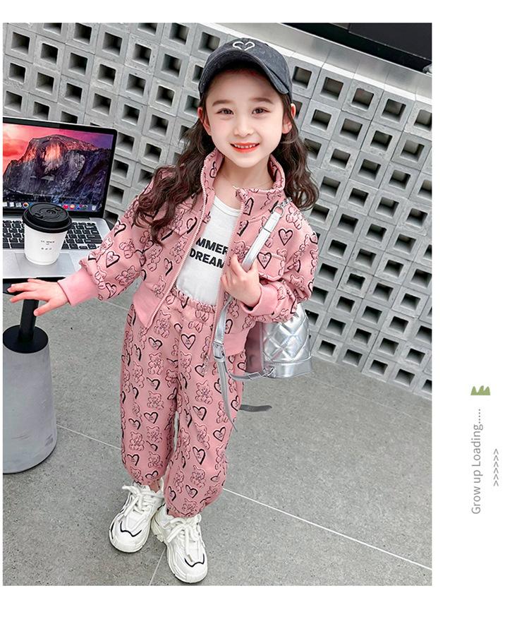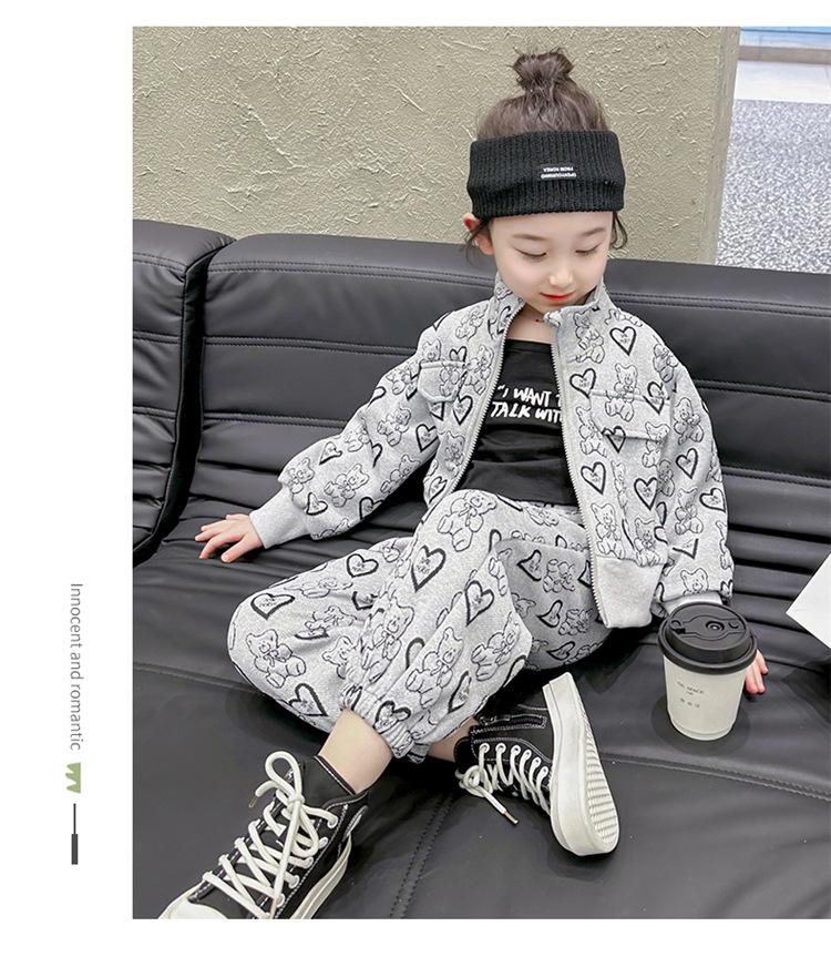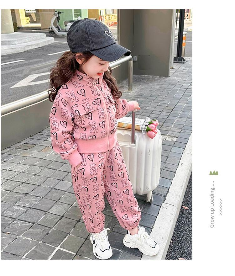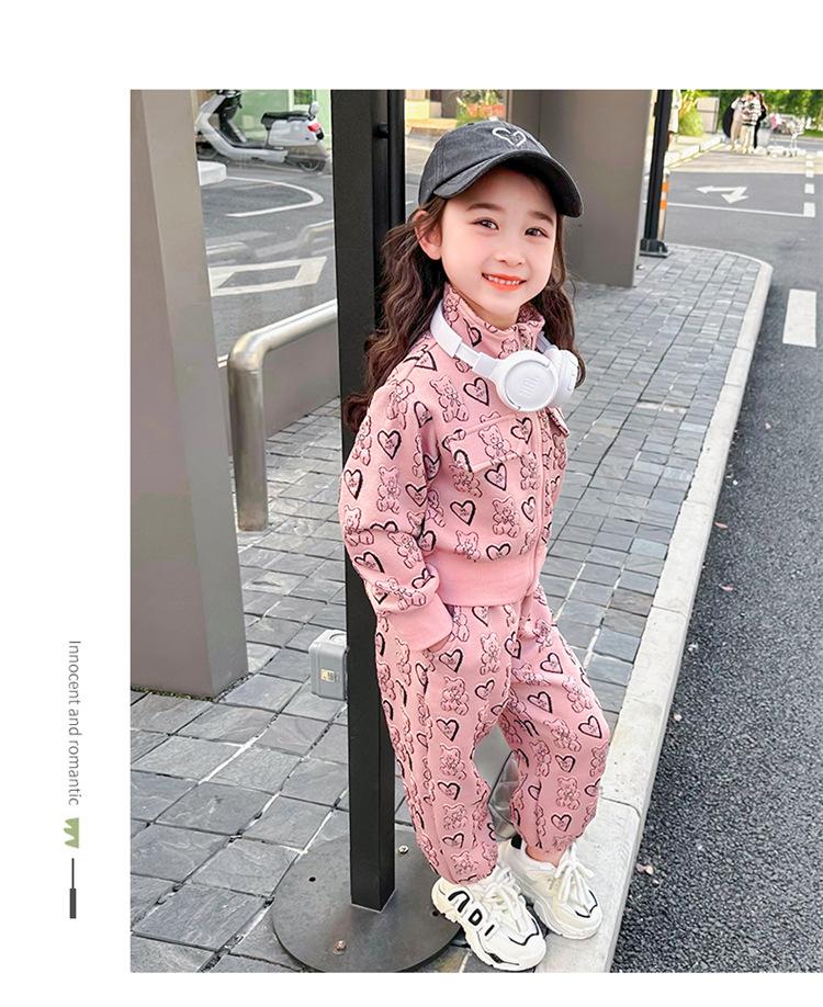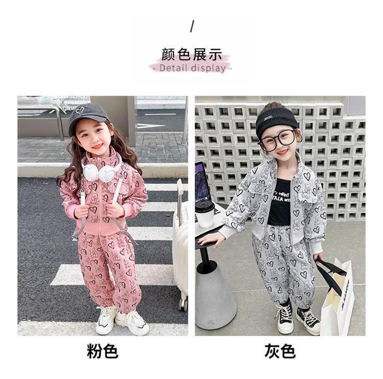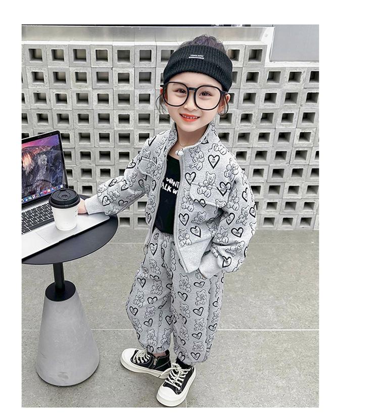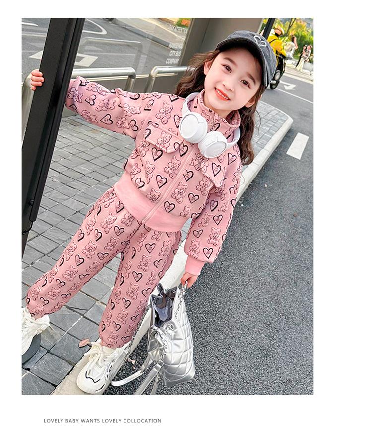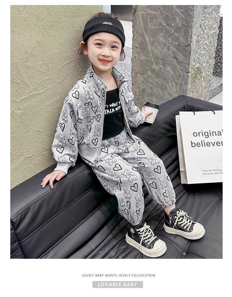 Traje Casual de Oso Tridimensional para Niñas 2024 Primavera y Otoño Nueva Ropa Infantil Moderna Conjunto Casual Deportivo de Dos Piezas