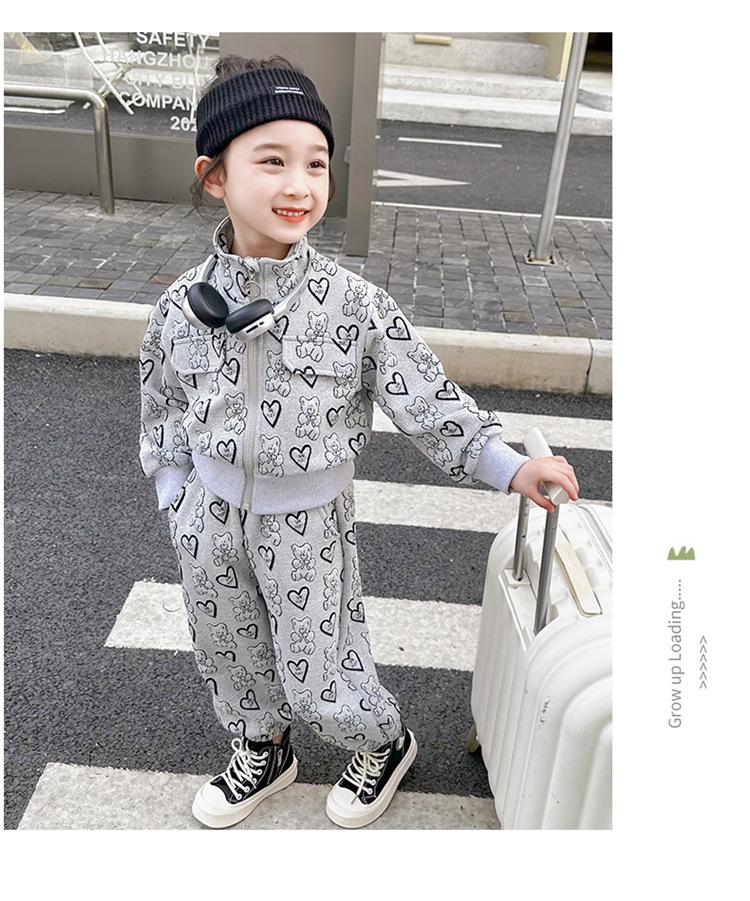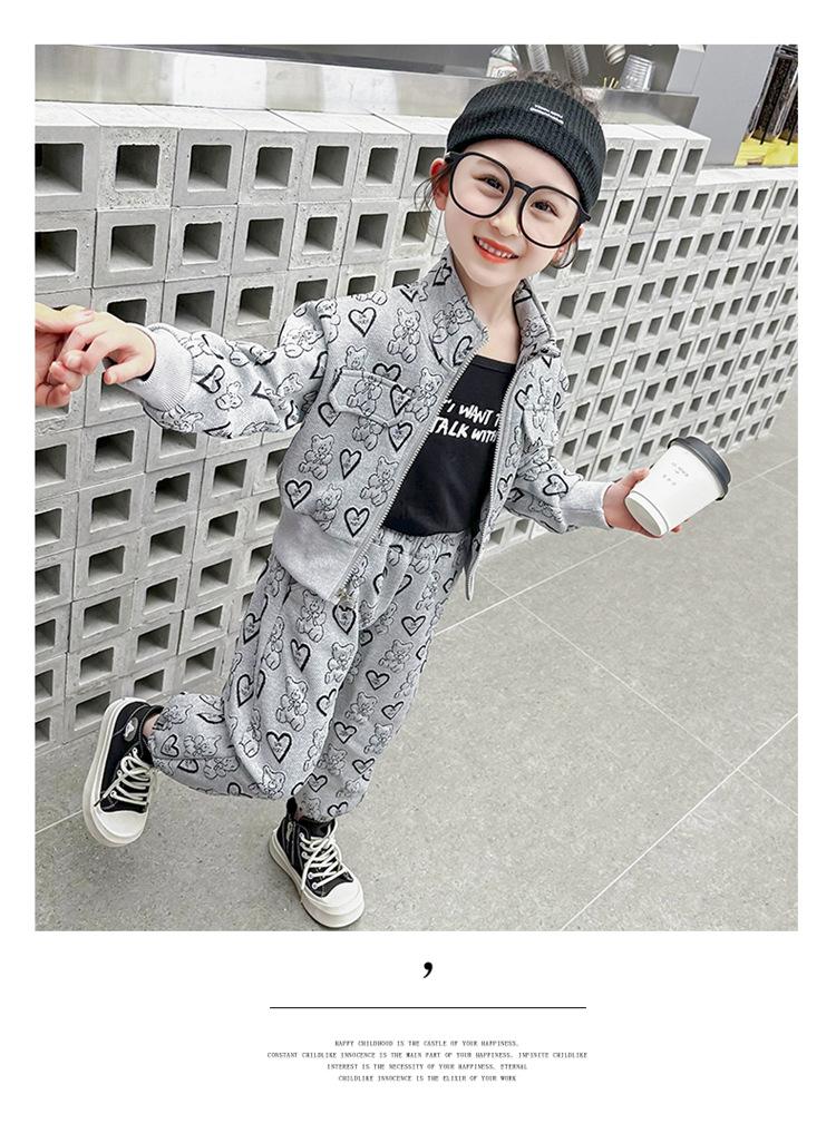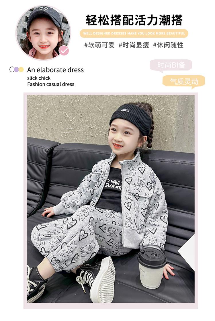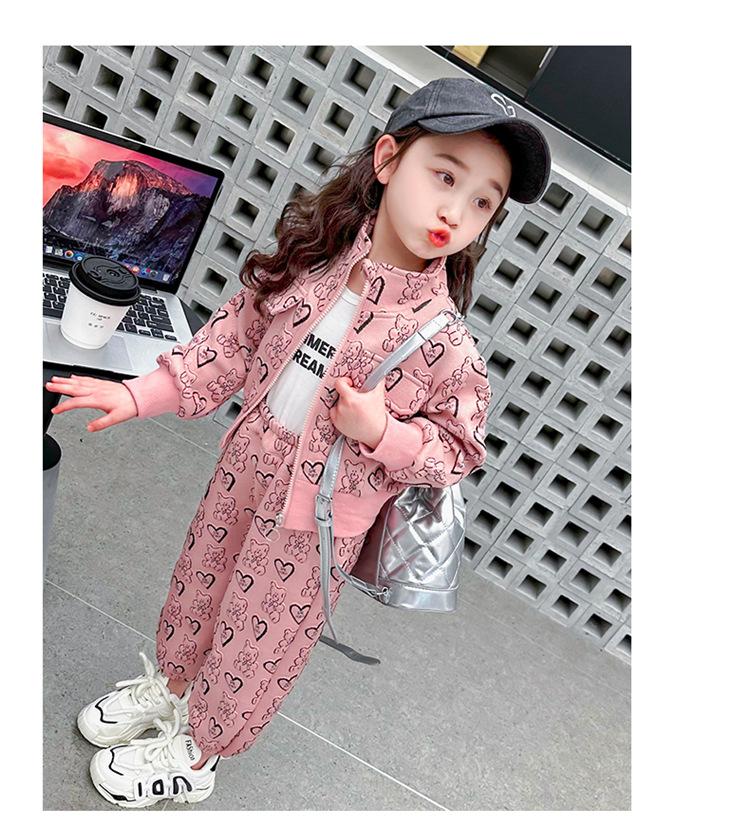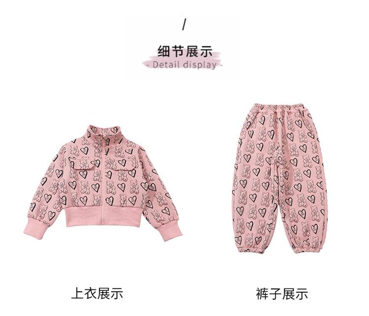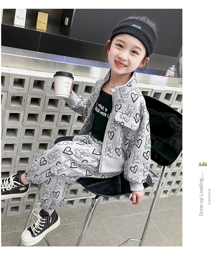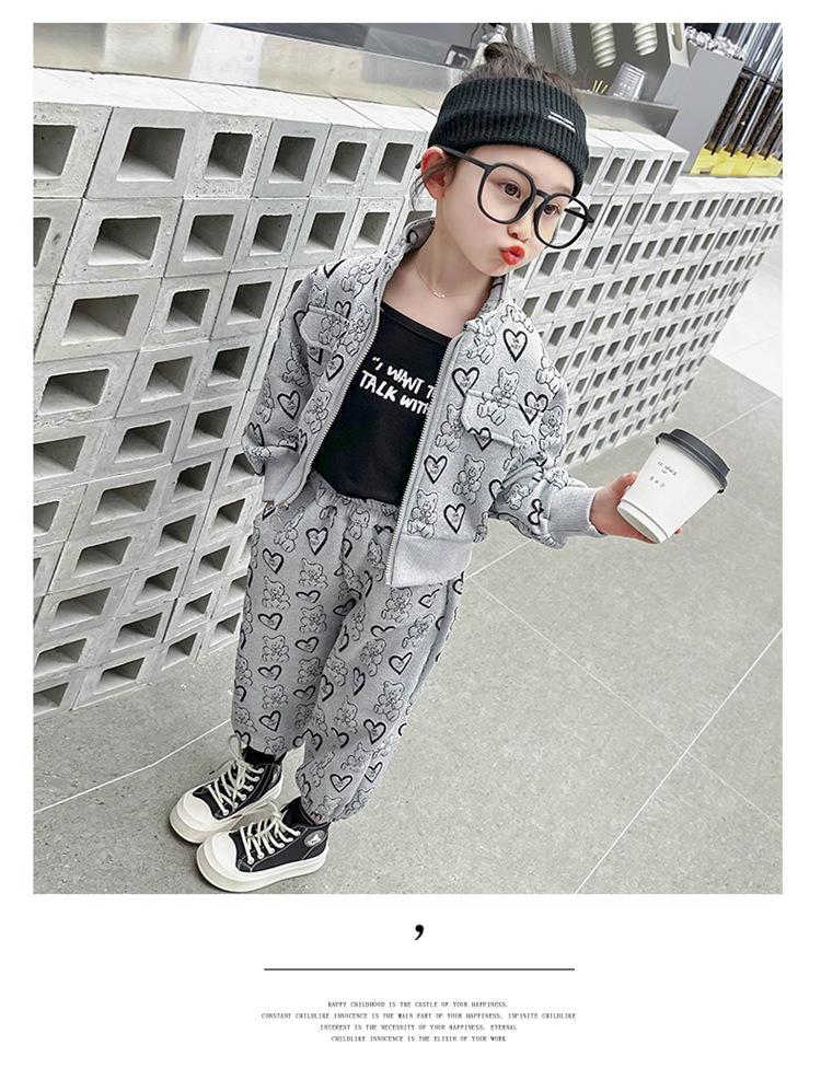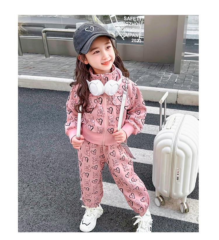 Traje Casual de Oso Tridimensional para Niñas 2024 Primavera y Otoño Nueva Ropa Infantil Moderna Conjunto Casual Deportivo de Dos Piezas
