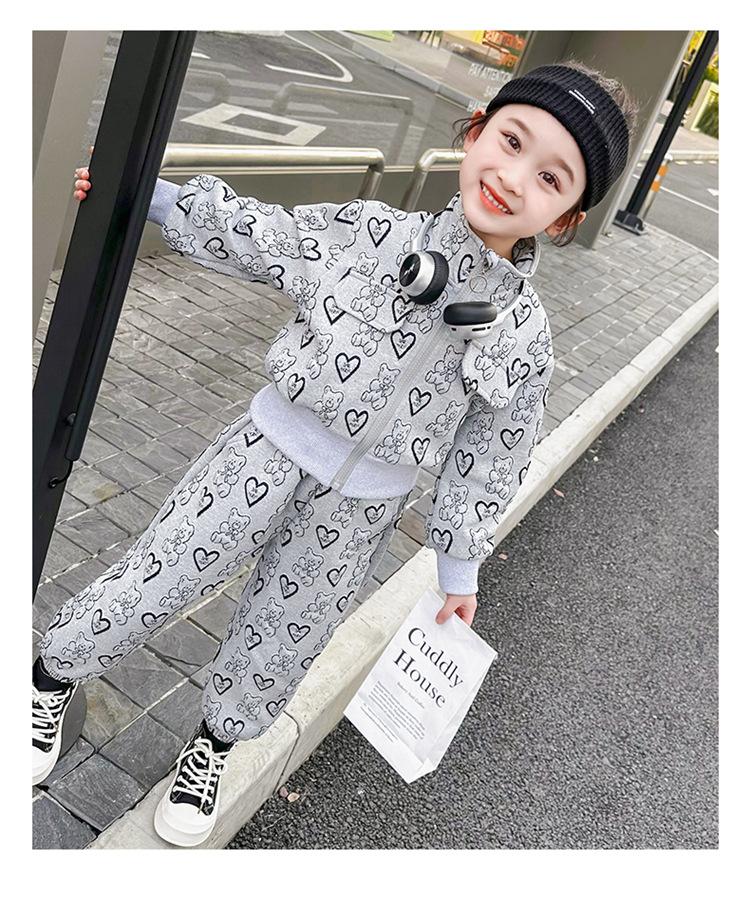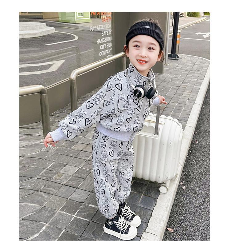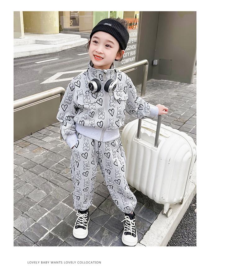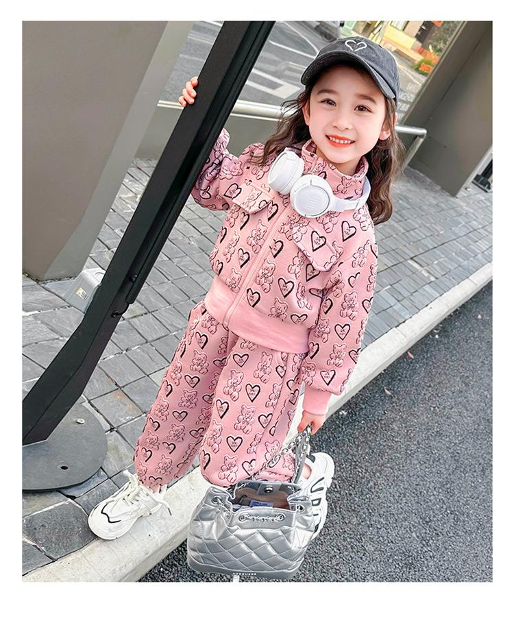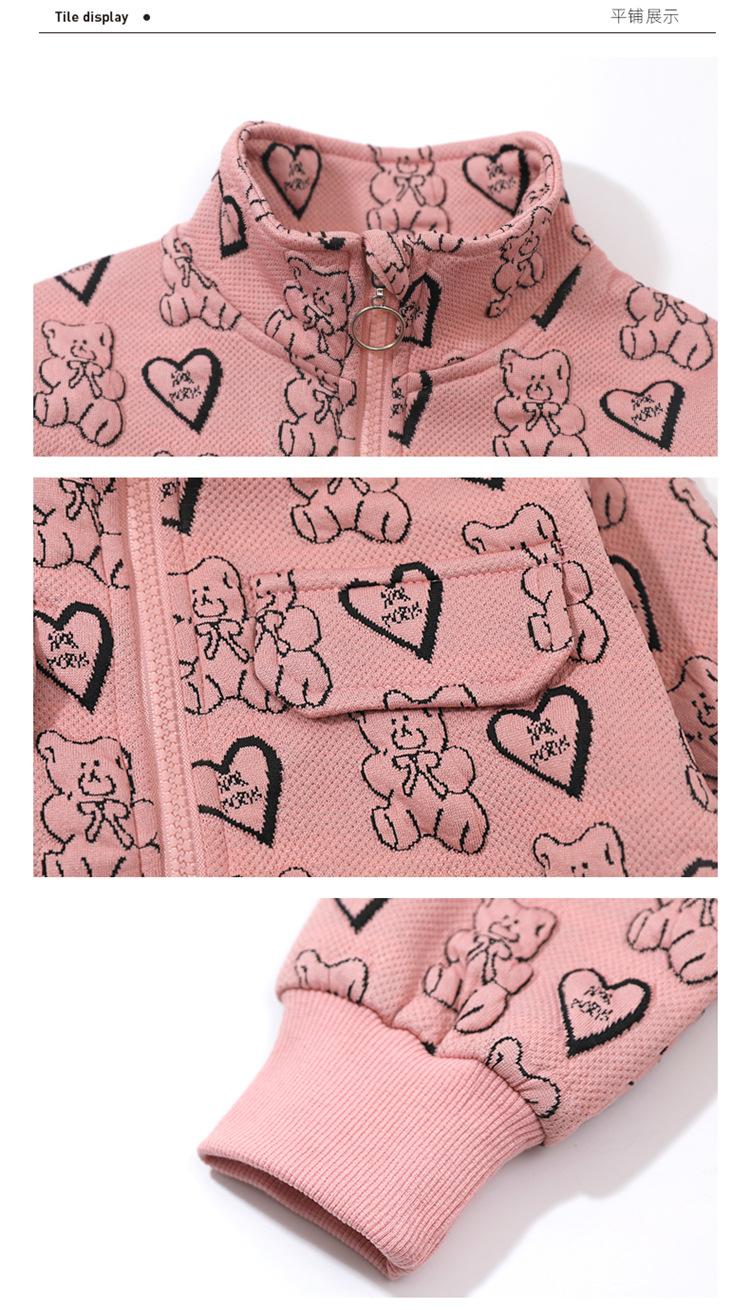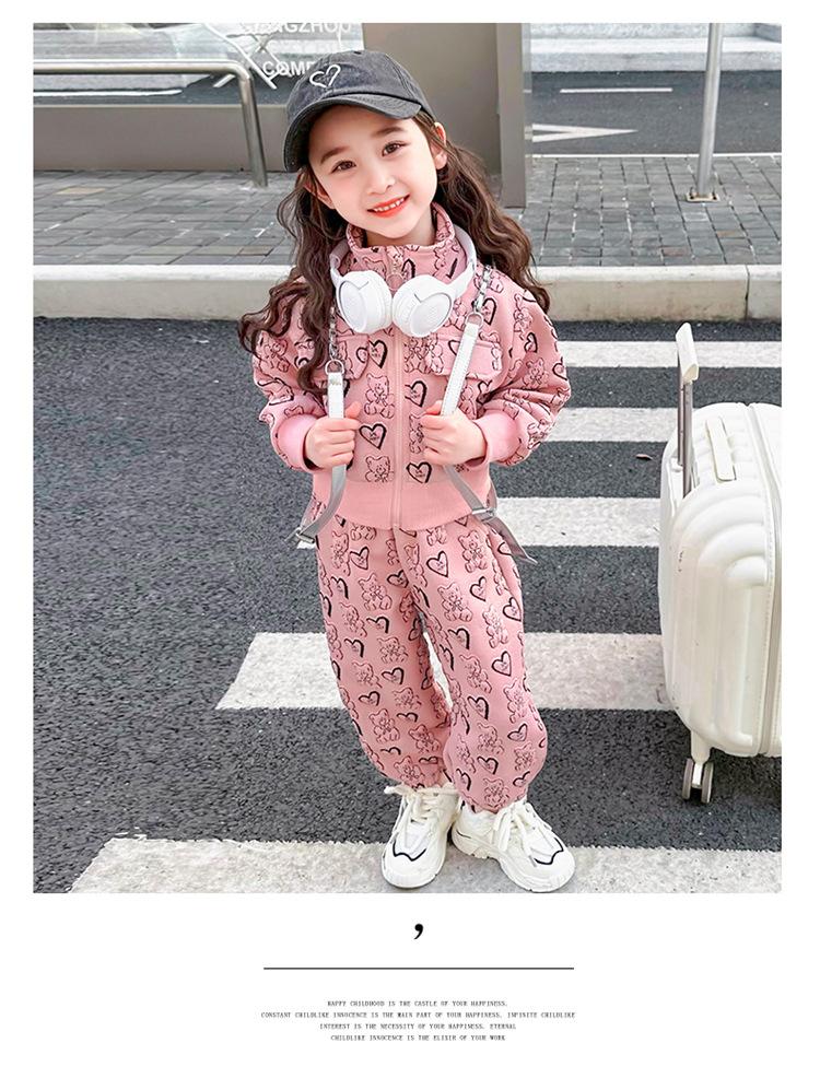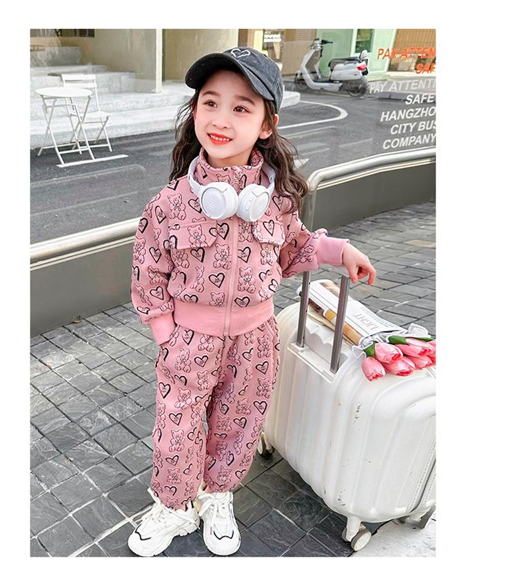 Traje Casual de Oso Tridimensional para Niñas 2024 Primavera y Otoño Nueva Ropa Infantil Moderna Conjunto Casual Deportivo de Dos Piezas